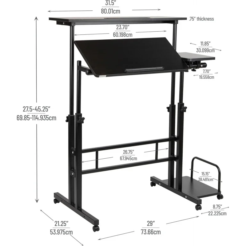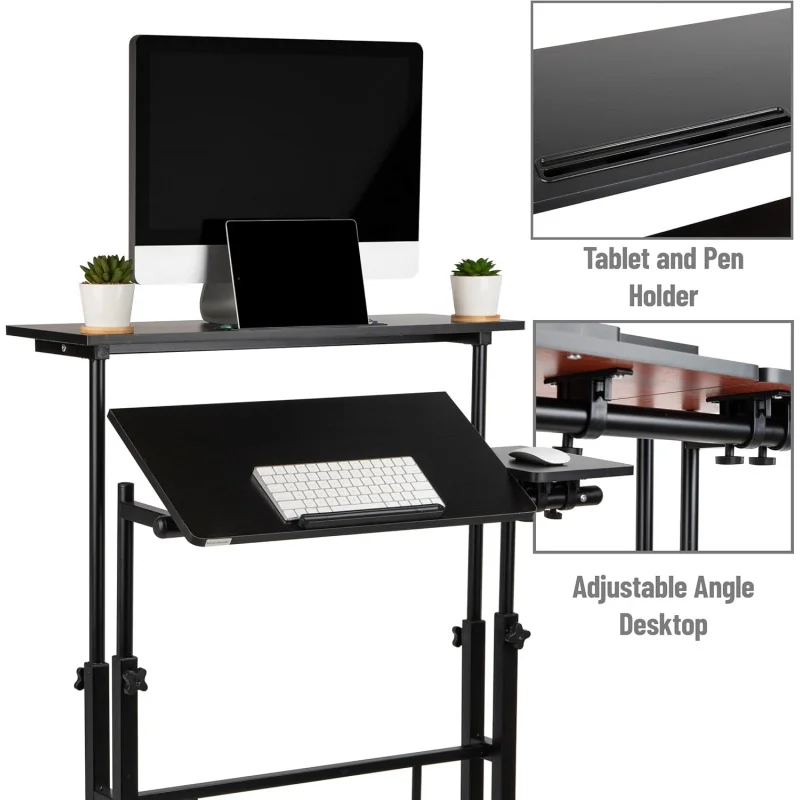 - STORE IT – The standing/sitting desk can easily be rolled into a corner or put away when you’re finished using it, making it great for flexible workspaces like living rooms, dens, family rooms, etc.