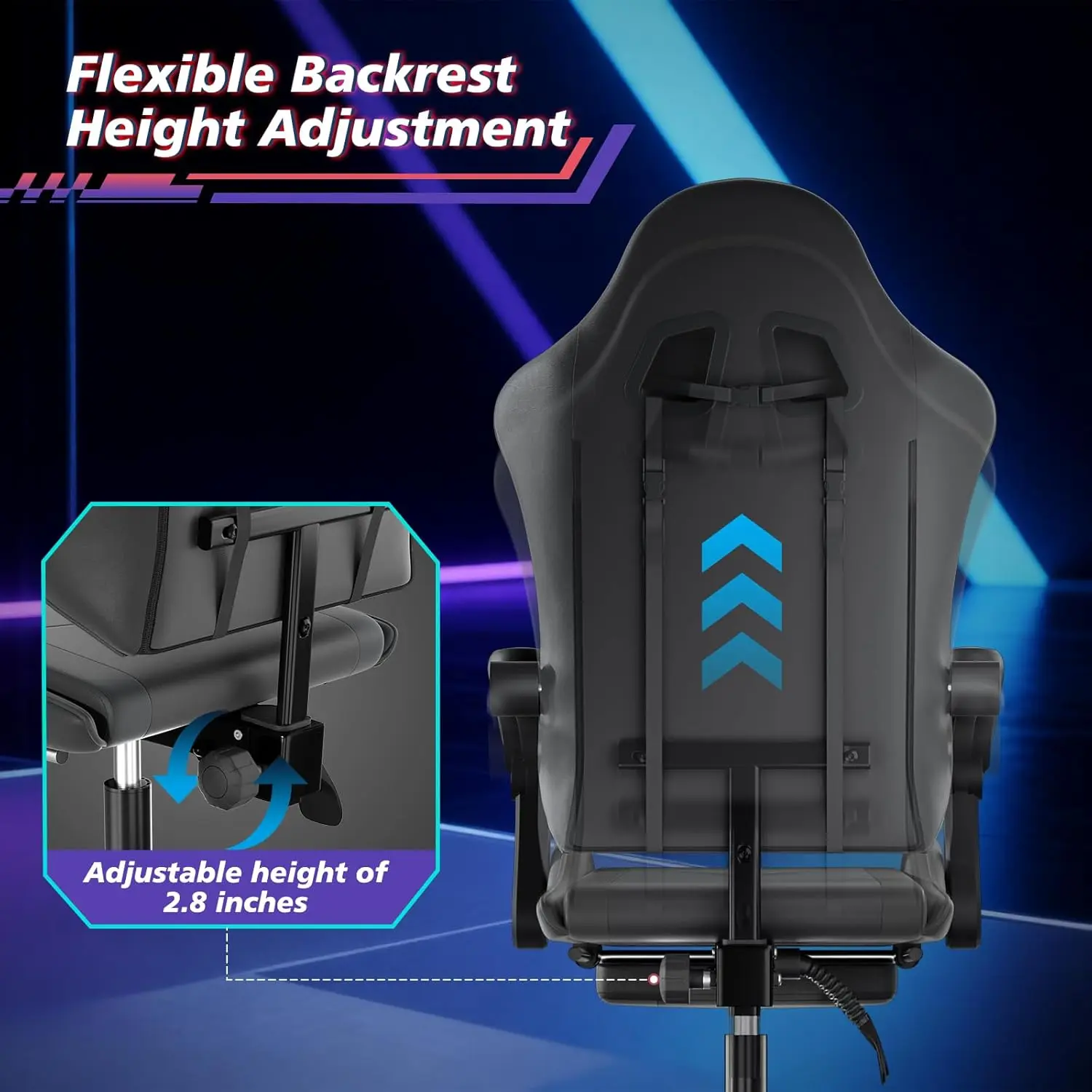 Adjustable Height PC Gaming Chair: Enjoy dual height customization with a 5-inch adjustable seat cushion and a 2.8 inch sliding backrest that moves along a reinforced track on the chair’s rear. This dual adjustment system helps you tailor the chair’s proportions to your body for support while gaming, working, or relaxing.