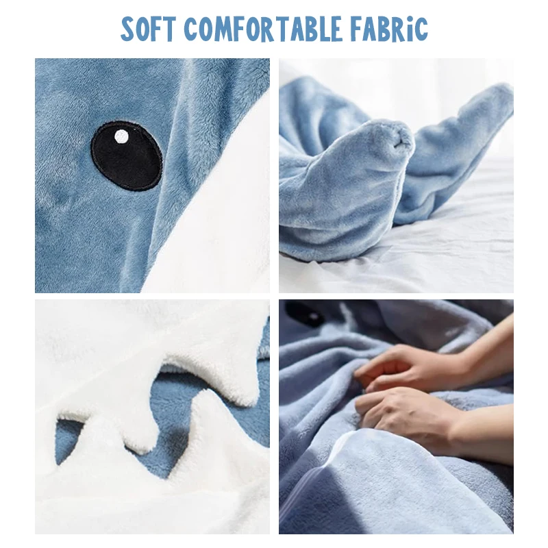 Double-sided Short Plush: Crafted from the softest flannel fleece, this shark blanket sleeping bag is not only super soft and comfortable but also lightweight, warm, and durable. The flannel material provides a cloud-like warmth, making it cozy to the touch.