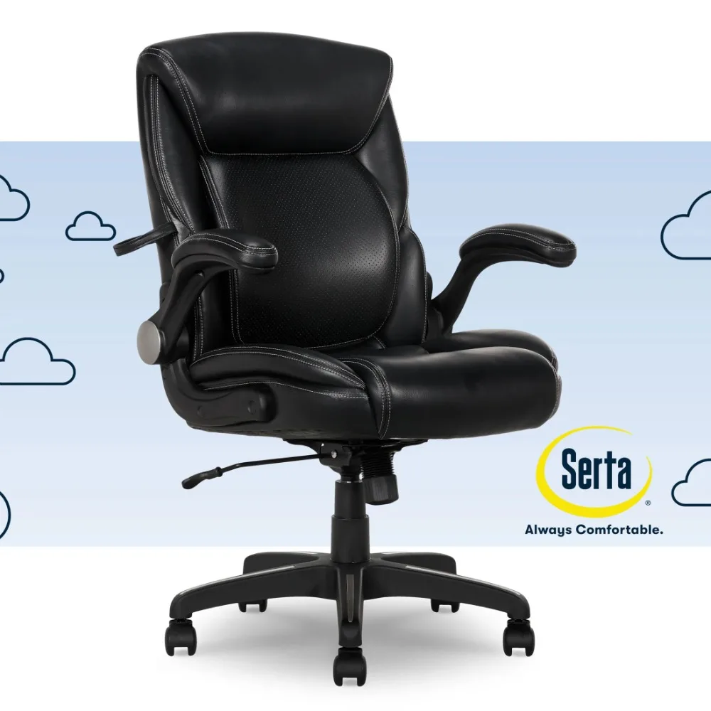 Serta Air Lumbar Bonded Leather Manager Office Chair, Black
