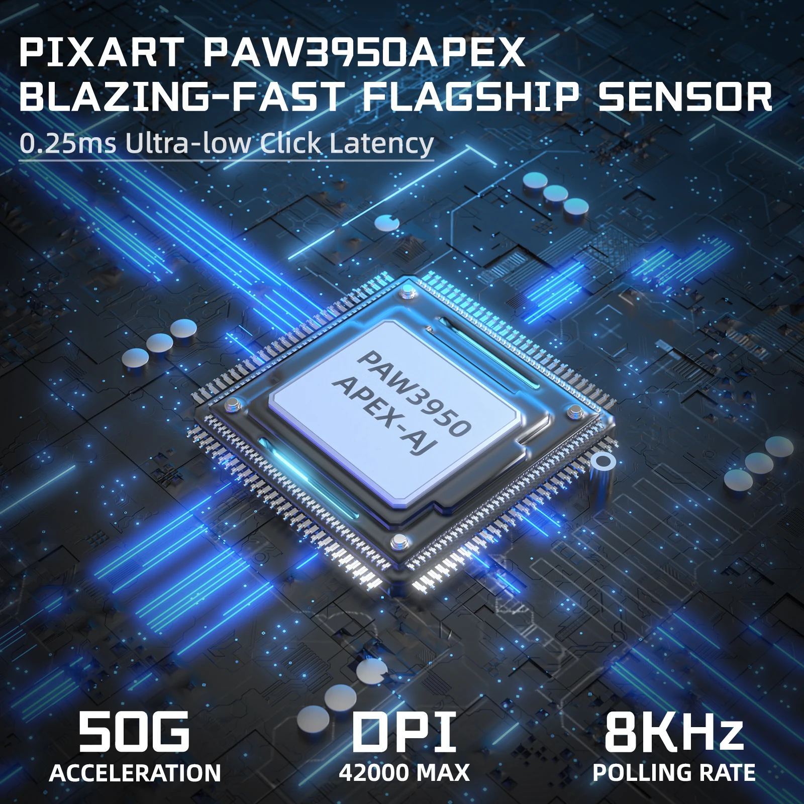 - PixArt PAW3950 flagship optical sensor with up to 42000 programmable DPI (adjustable in the software)