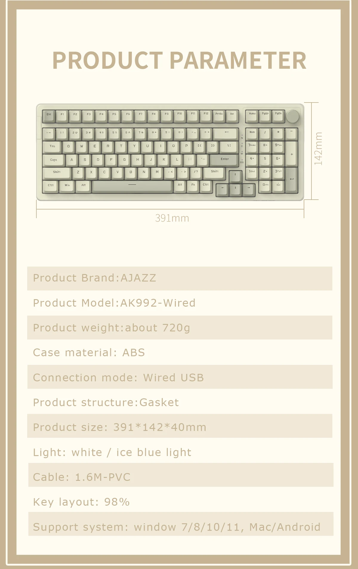 - Backlight: Ice blue (retro keyboard)
