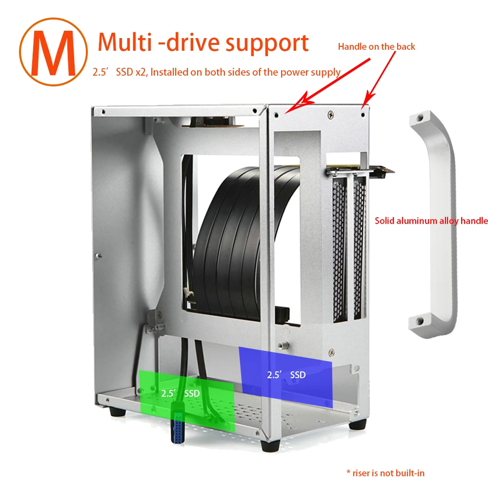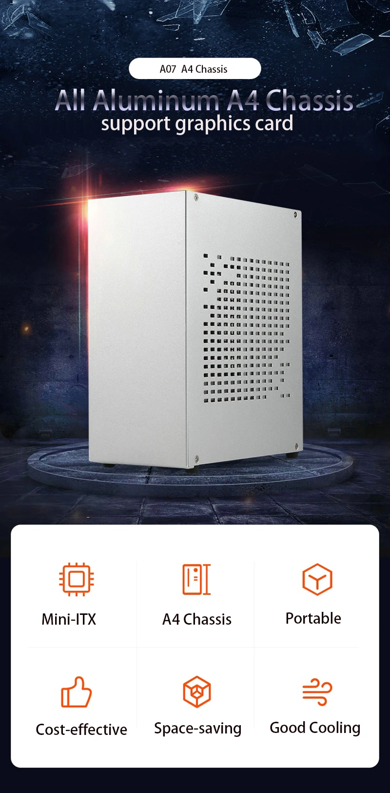 Upgrade your gaming setup with this all-aluminum Mini ITX chassis, designed for both performance and aesthetics. Ideal for gamers and PC enthusiasts who require a compact yet powerful system, this case supports high-performance graphics cards like the RTX2070 and powerful processors such as Intel’s i5 series. The robust build quality ensures excellent durability, while the minimalist design enhances the look of any gaming station.