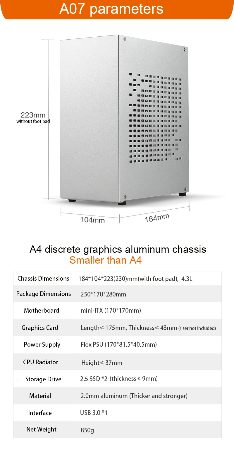 All Aluminum Mini ITX HTPC Chassis A4 2.0mm