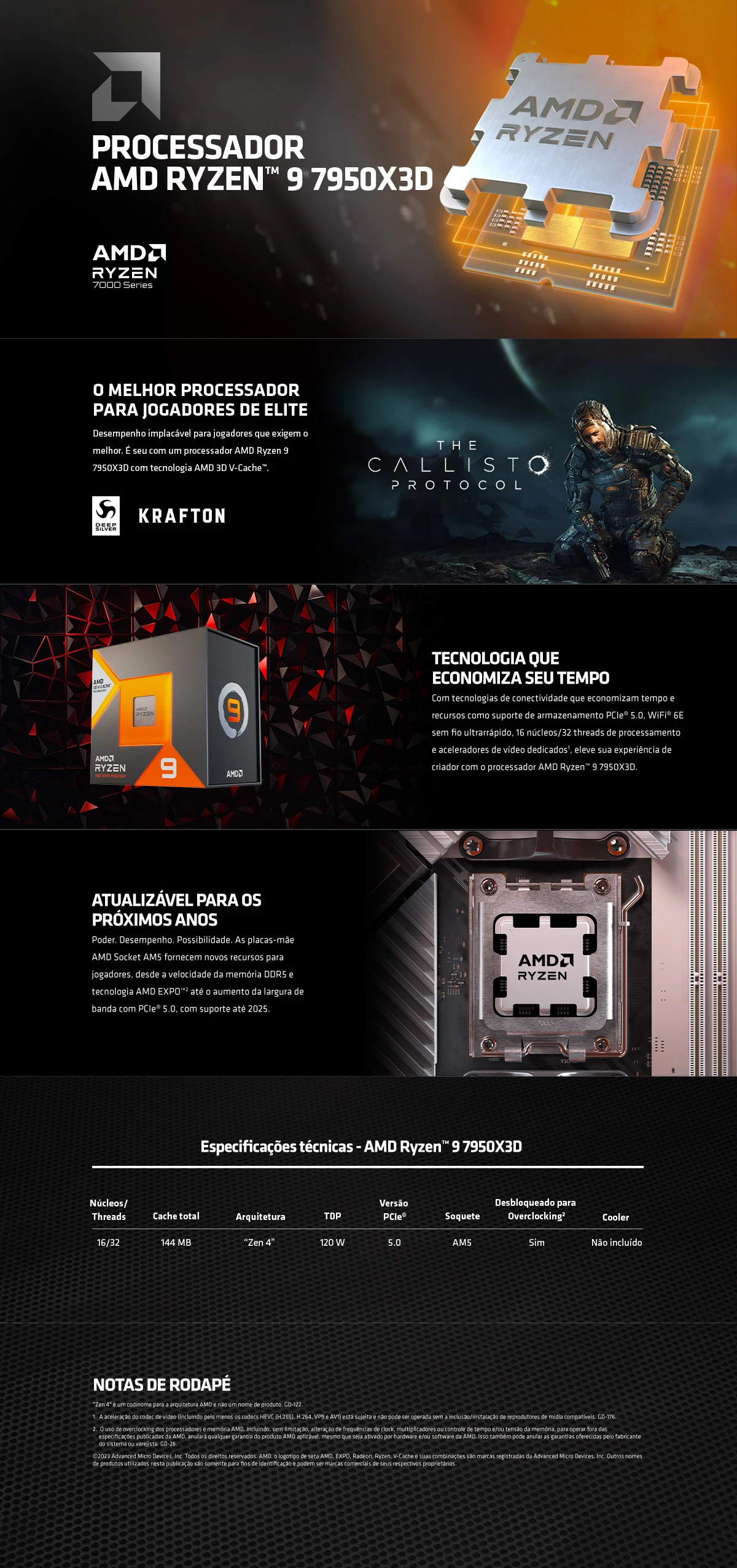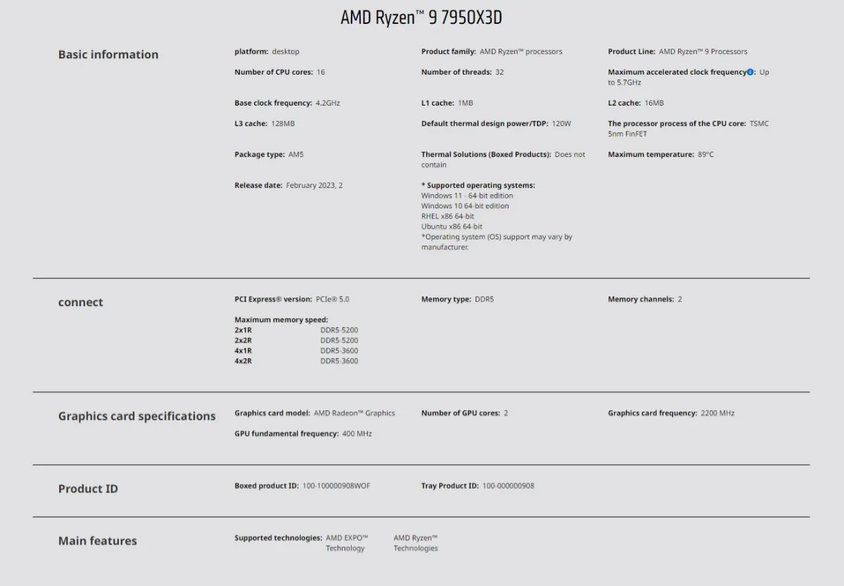 DDR5 Memory Support: The Ryzen 9 7950X3D supports the latest DDR5 memory, providing faster data transfer and improved performance for all your computing needs.