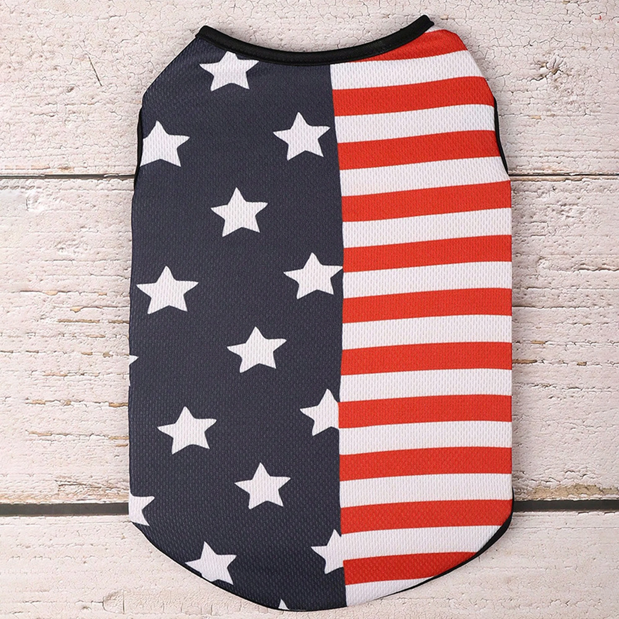 - 4th of July dog outfit: Dog tank top with classic stars and stripes print, round neckline, sleeveless; adds a stylish and patriotic touch to your dog’s closet and makes them look cute and fashionable.