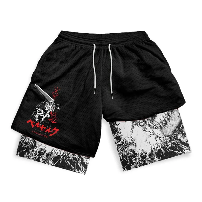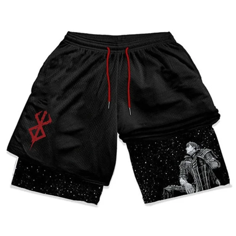 Elevate Your Workout with Stylish Anime Berserk 2-in-1 Compression Shorts for Men
