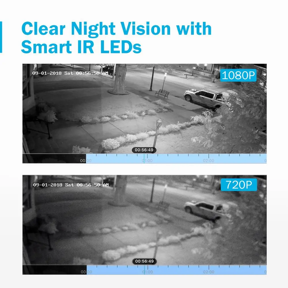 • Up to 30m night vision with Smart IR