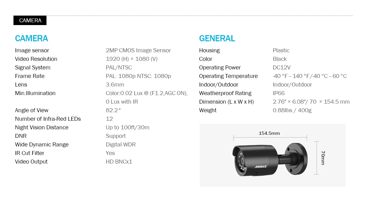 ANNKE 1080P 8CH DVR Security System & 2MP Camera