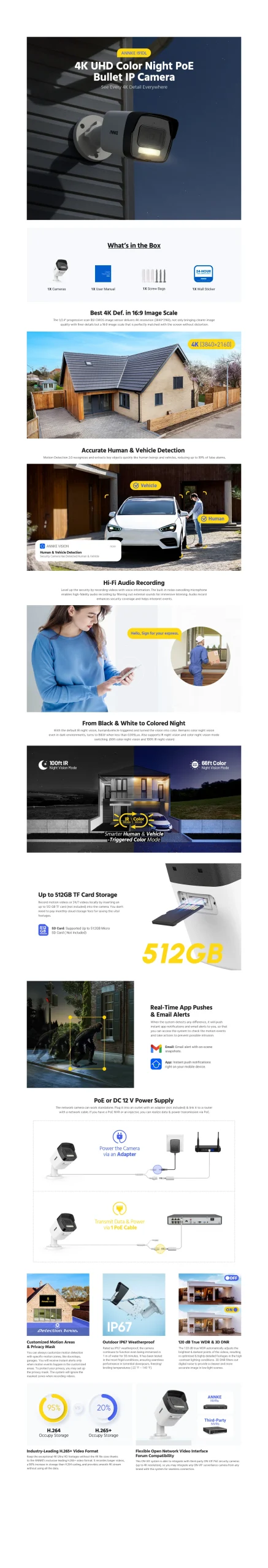 ANNKE 4K Weatherproof IP Bullet Camera with Audio 8MP