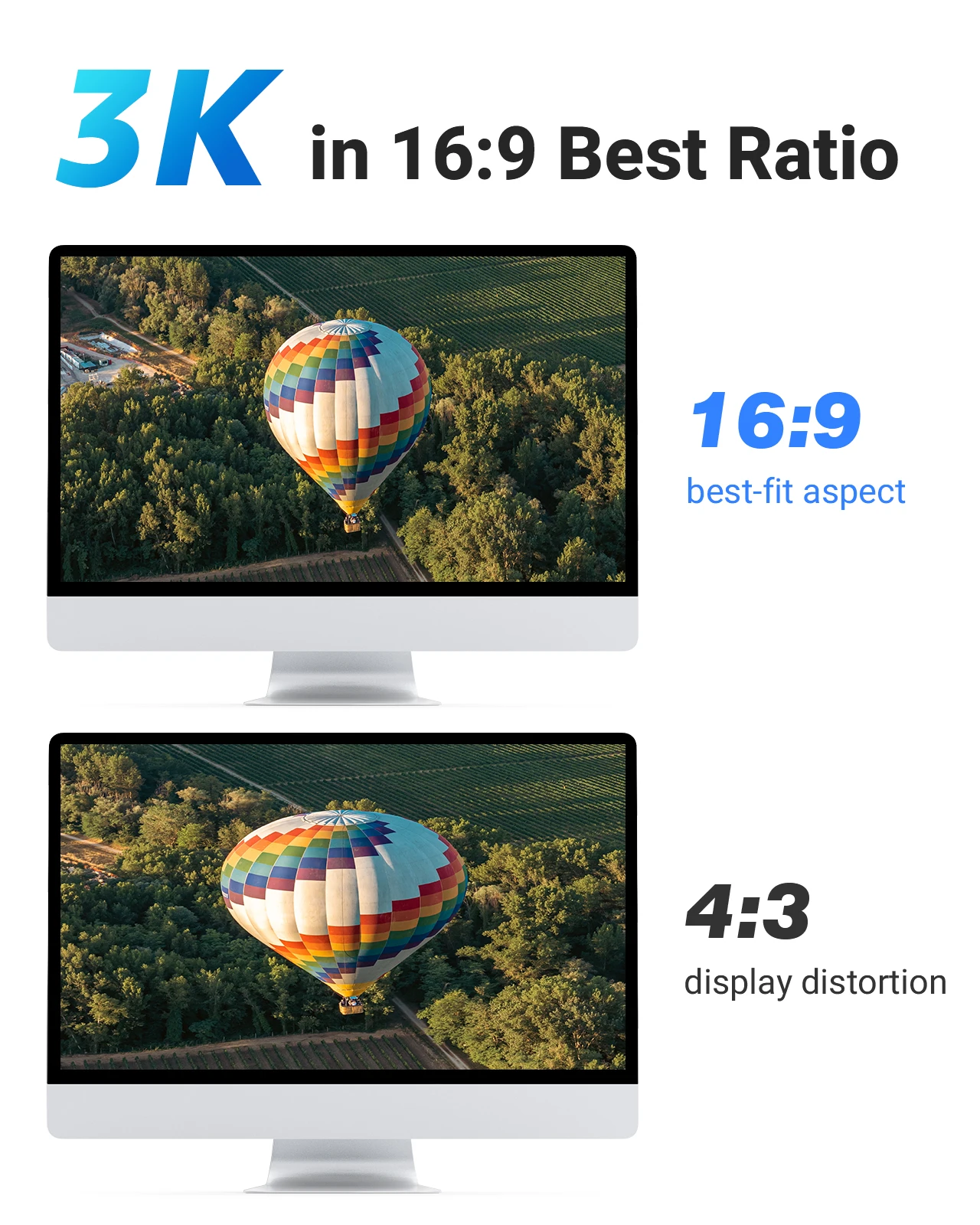 - Max Resolution: 3K (3072×1728), 16:9 picture ratio is more suitable for the most popular display