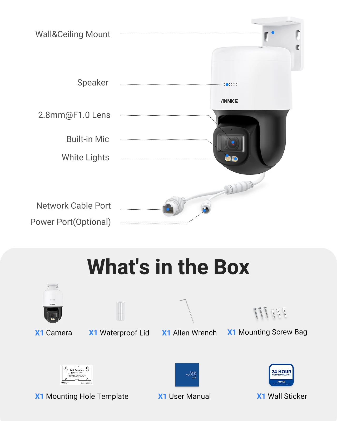 Annke 6MP Full Color Outdoor POE Camera with Audio – 2.8MM Lens
