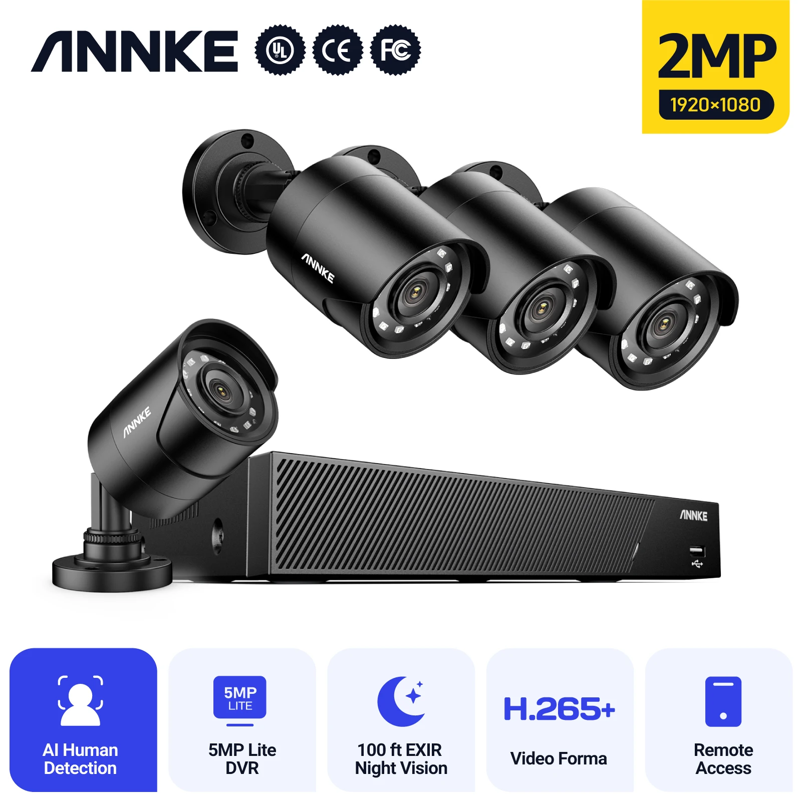 ANNKE 8CH HD 2MP DVR Security Kit with 4 IR Cameras