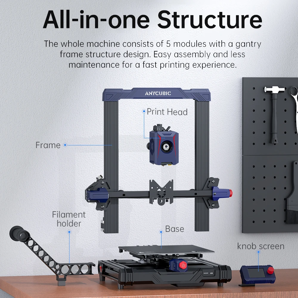- All-in-One Structure: The printer is composed of five modules within a gantry frame structure. This design facilitates easy assembly and minimal maintenance, leading to a faster printing experience.