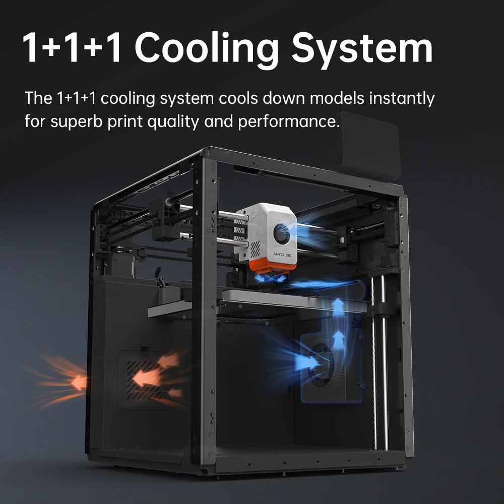 The 1+1+1 cooling system instantly cools down models for superb print quality and performance.