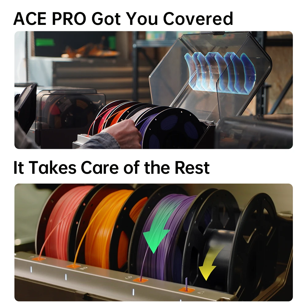 - Multi-Color 3D Printer: Anycubic ACE PRO features 4 slots, effortlessly tackling basic four-color printing. When two Anycubic ACE PROs are combined, you can unleash eight-color printing to bring even more unimaginable possibilities, saving the need for additional painting later.