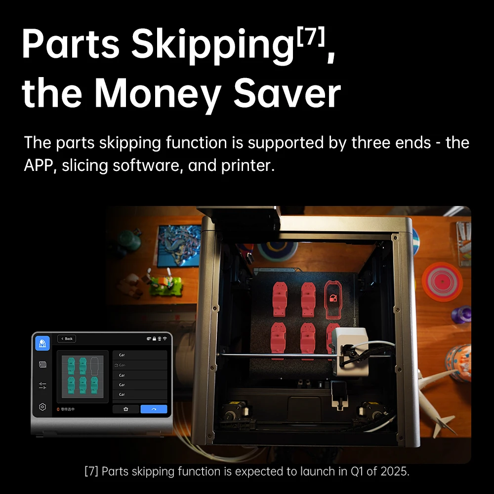 The parts skipping function is supported by three ends – the APP, the slicing software, and the printer.