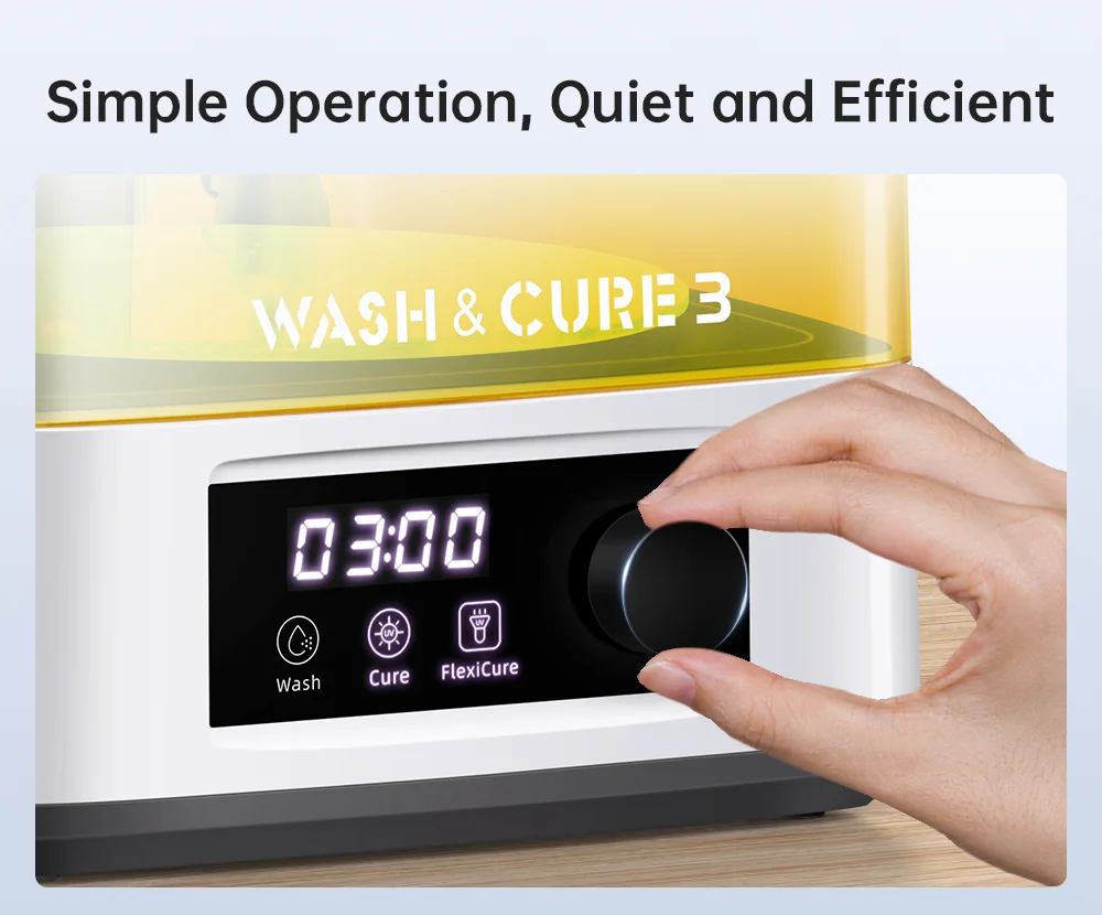 Cleaning and curing dual modes, easily selected with one click; Enhanced Gooseneck light curing mode can be easily toggled on and off with one click. Infinite rotary knob control, adjustable from 1 to 30 minutes at will.