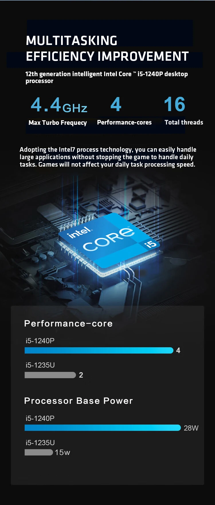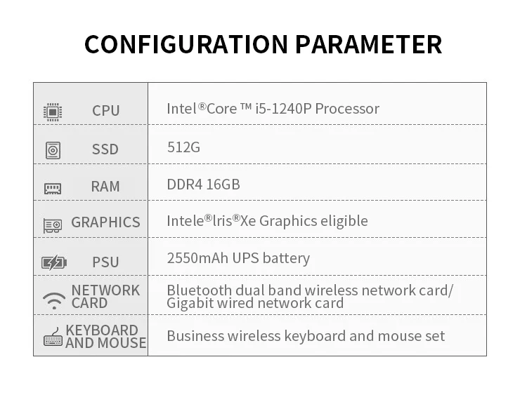 - Processor: Intel i5-1240P with 12 cores, providing high-speed performance and efficient multitasking capabilities.