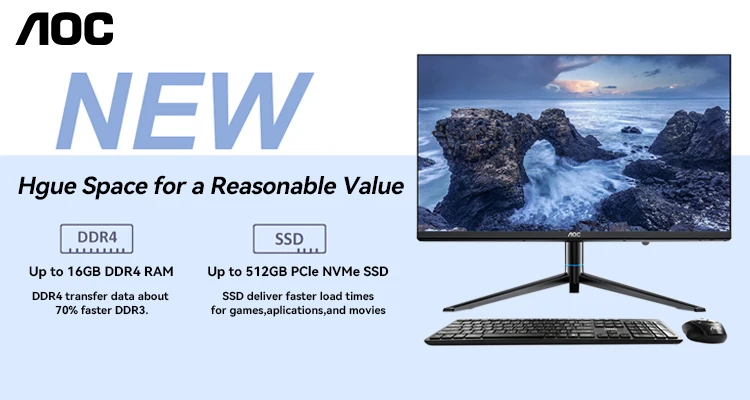 The AOC All-in-one Computer E99 is a comprehensive solution for users seeking a powerful, space-saving PC that excels in both gaming and office tasks, featuring a high-performance processor, ample memory, and a vibrant display.