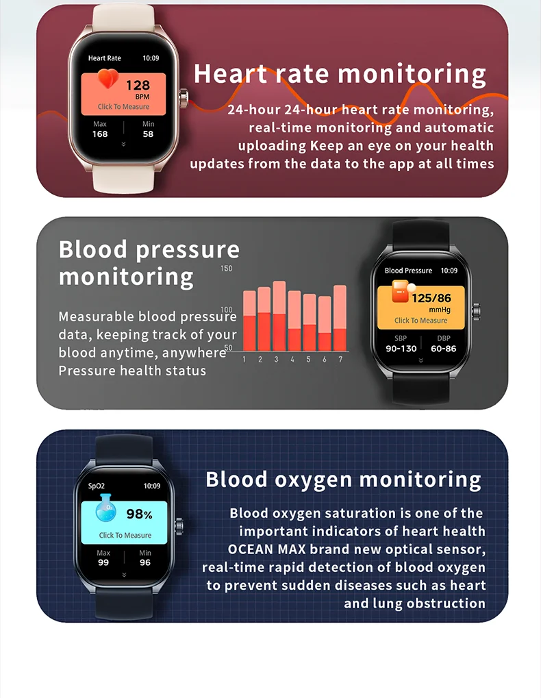 Real-time monitoring of various health factors such as heart rate, blood pressure, blood oxygen, and emotional stress.