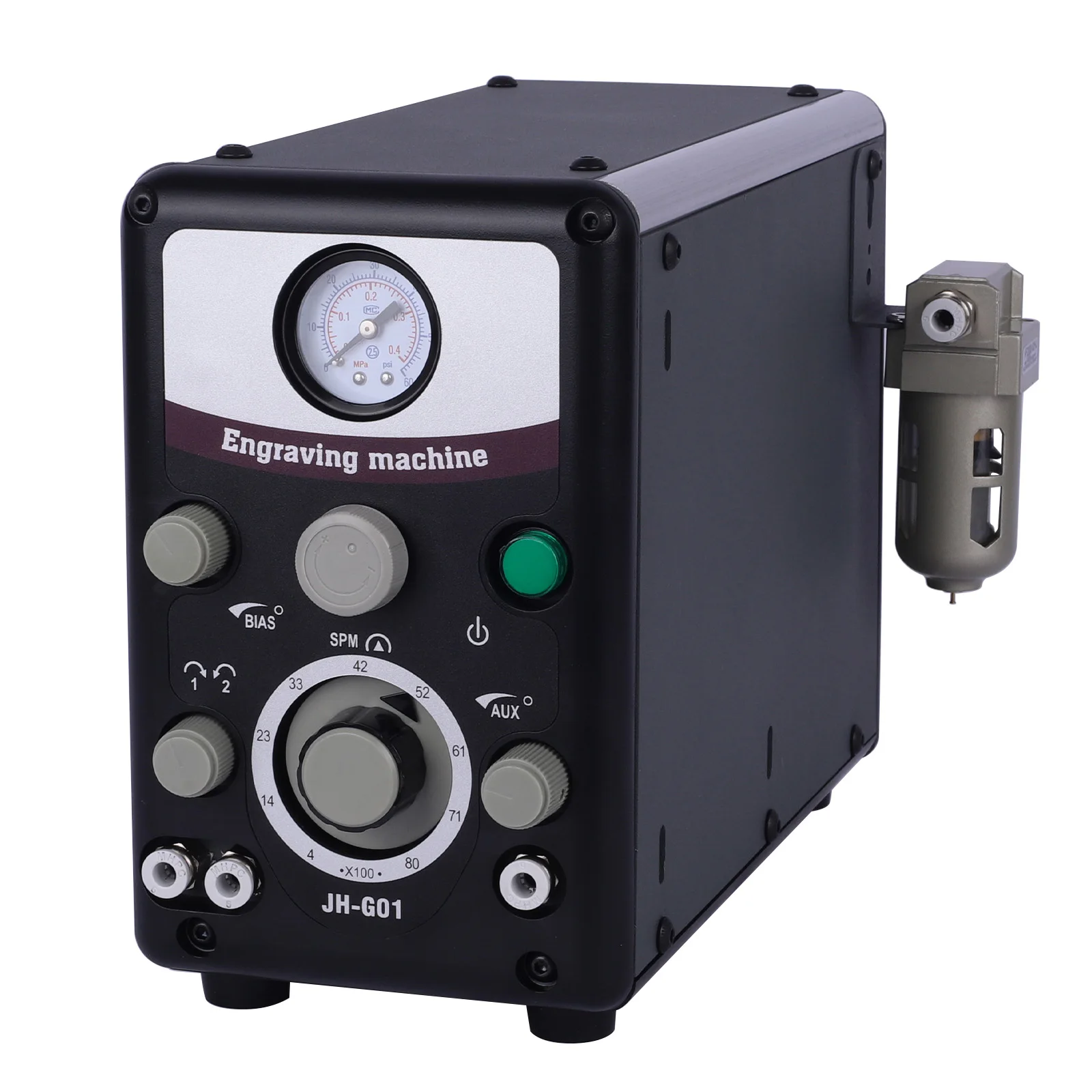 - Pneumatic engraver: 400-8000 strokes per minute, throttle bias adjustment, and a dual-stage precision air regulator.