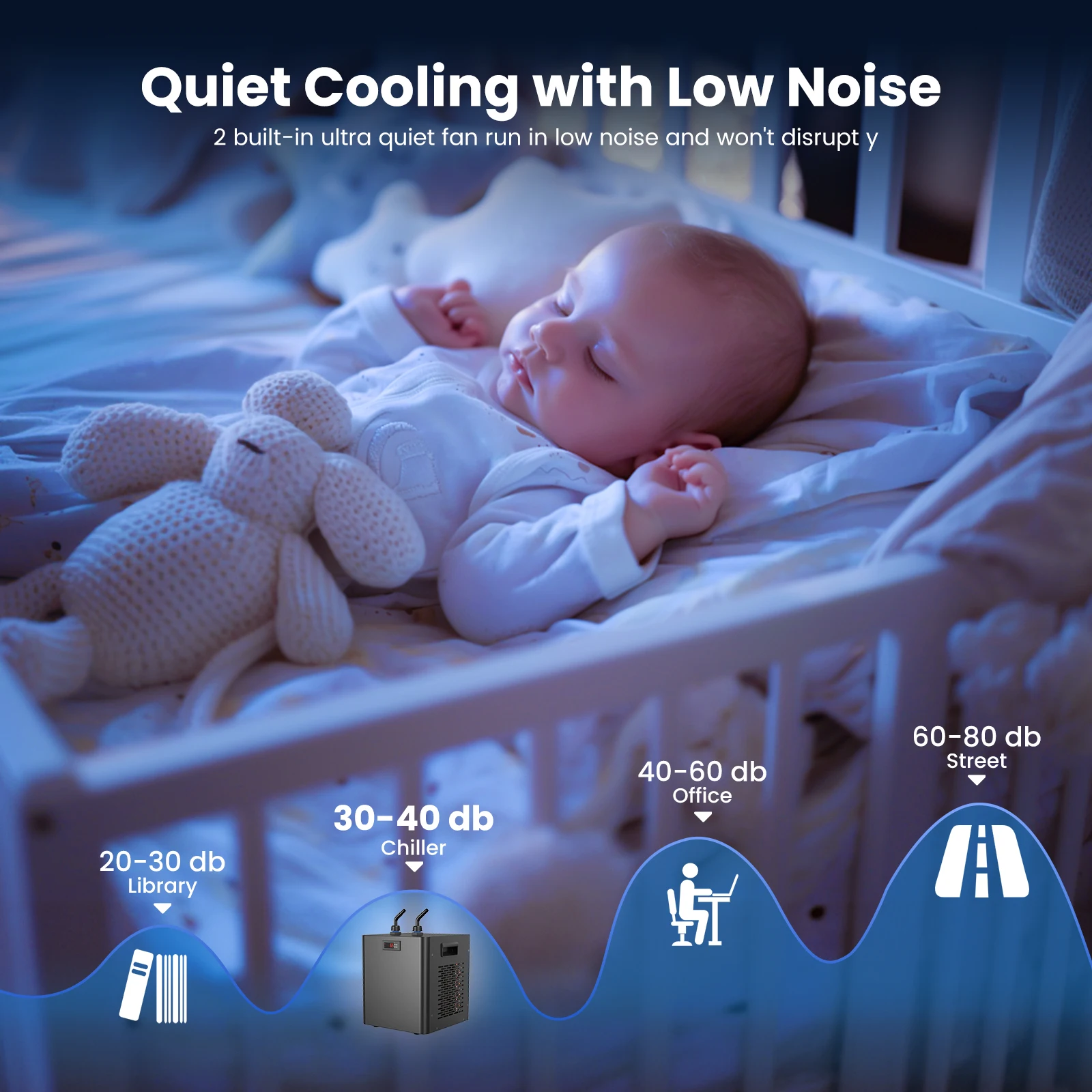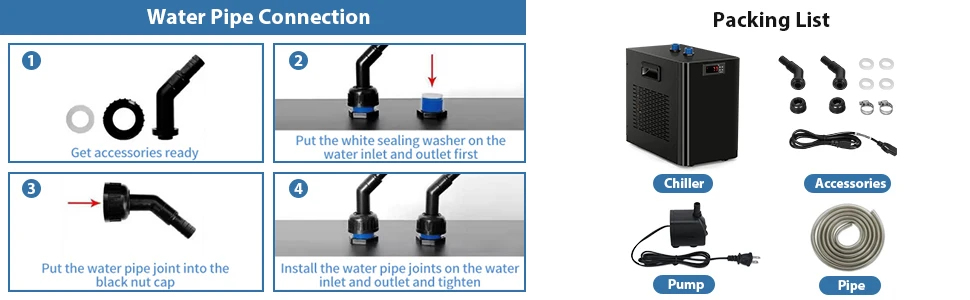 - Silent Operation – Designed with noise-reduction features, the compressor operates quietly. It monitors water temperature in real time and automatically starts cooling if temperatures rise above the preset level. After a power outage, it resumes cooling based on the previously set temperature.