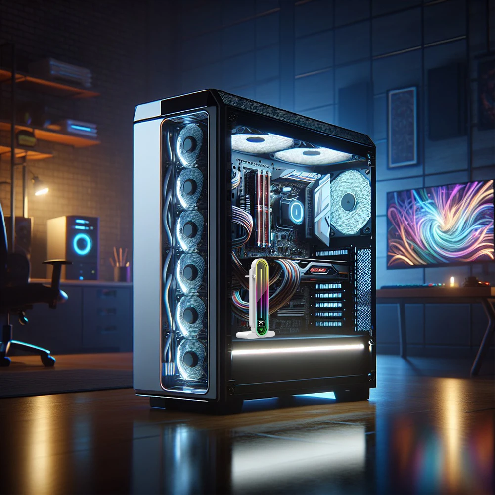 4. Aluminum Alloy Material: The GPU brace is made from durable aluminum alloy with a CNC-finished surface for improved texture and durability. It helps prevent GPU sagging and provides stable support for balanced operation.
