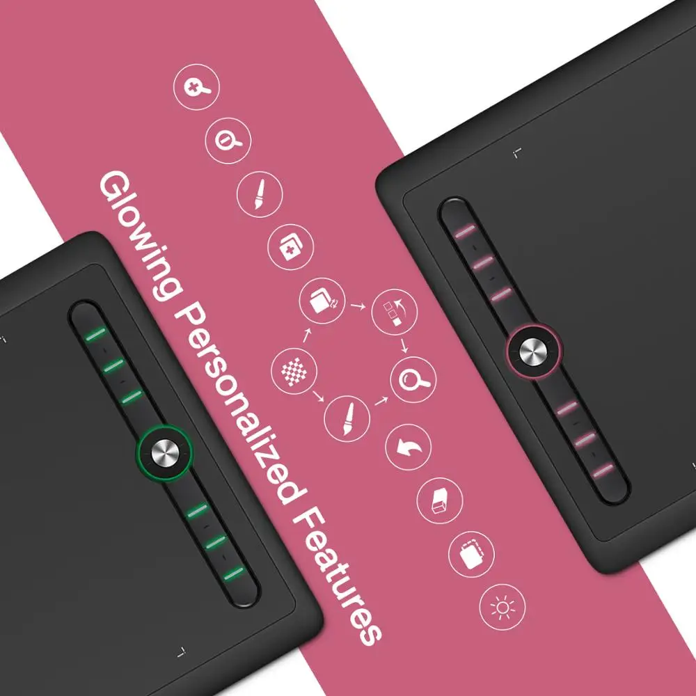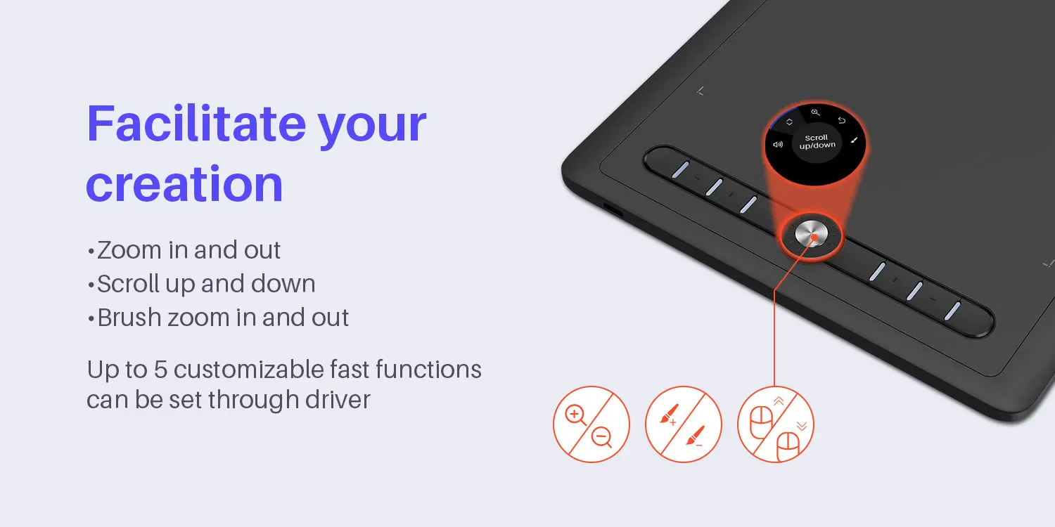 - Eight shortcuts simplify the drawing process and greatly improve drawing efficiency. The keys can be customized to individualize your work and achieve higher efficiency. Marks on each key help you locate your fingers without looking at the pen tablet.