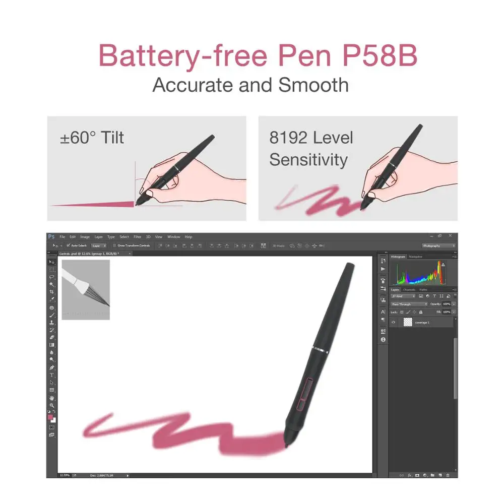 - The graphic tablet does not require a battery or a rechargeable pen, allowing you to express your inspiration freely. Passive technology enables users to work without constraints.