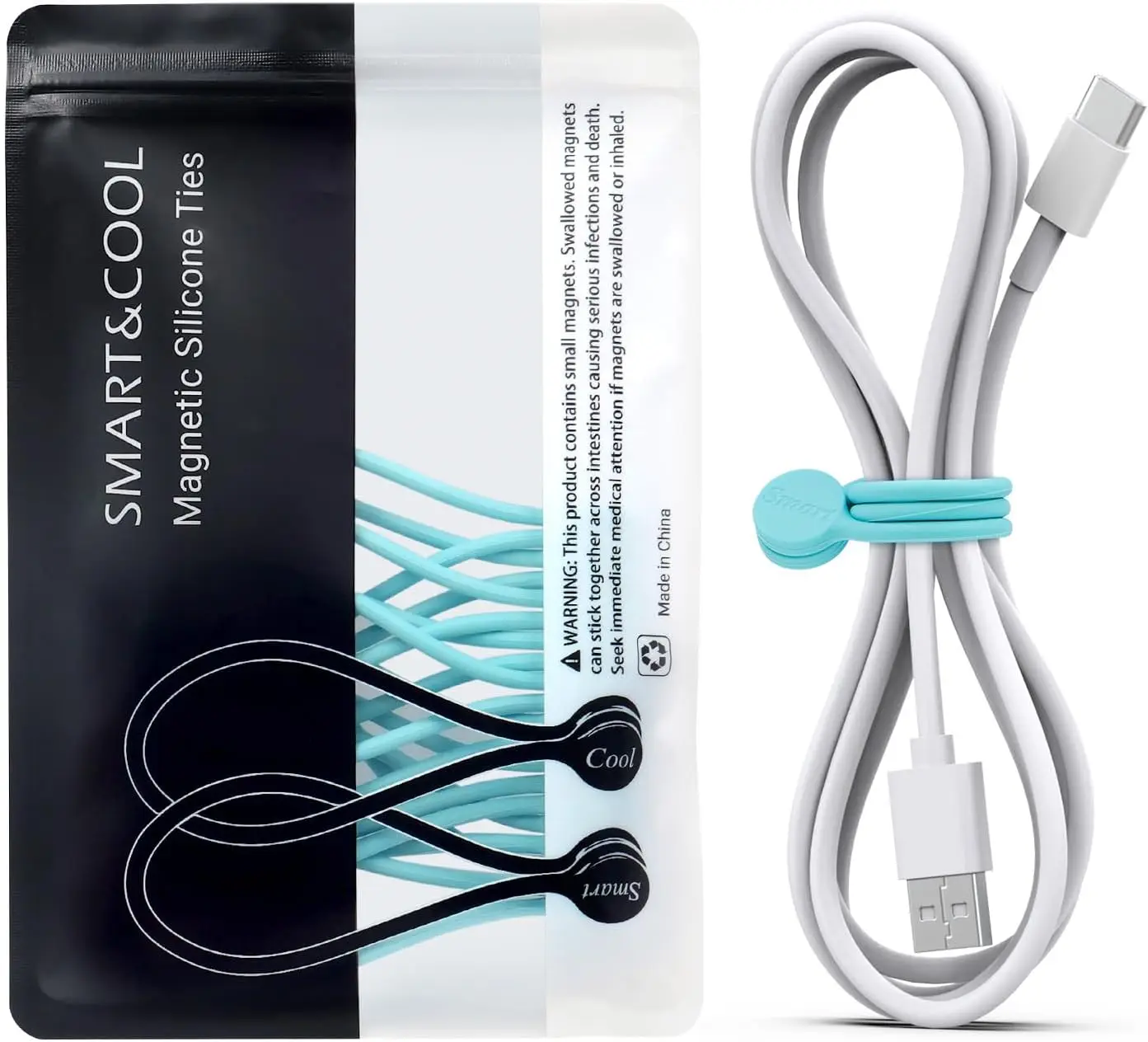 - Reusable silicone magnetic cable ties