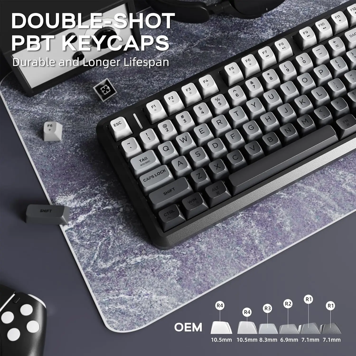 - PBT double-shot keycaps: Durable, fade-resistant legends built for heavy typing and gaming.