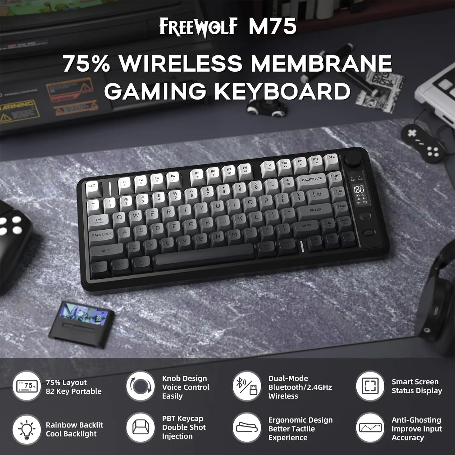 Upgrade your desktop with the Freewolf M75—where precision meets wireless freedom.