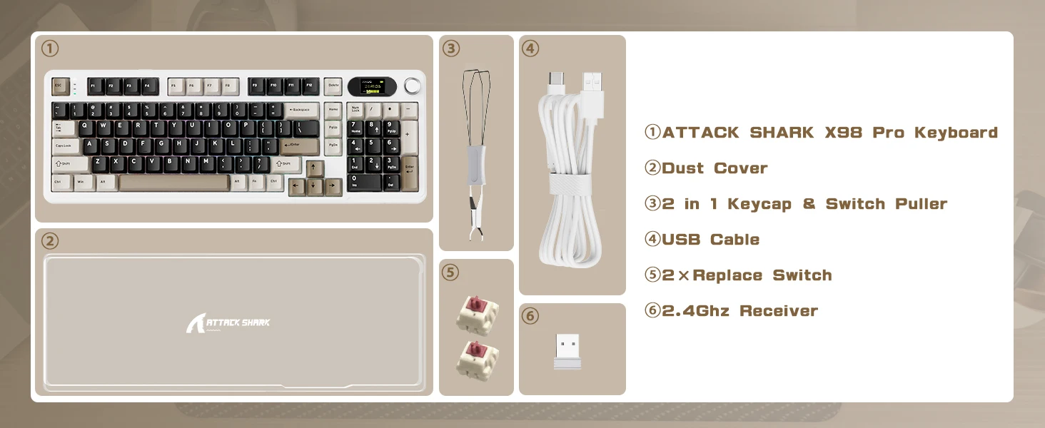 - 1× ATTACK SHARK X98 Pro Keyboard