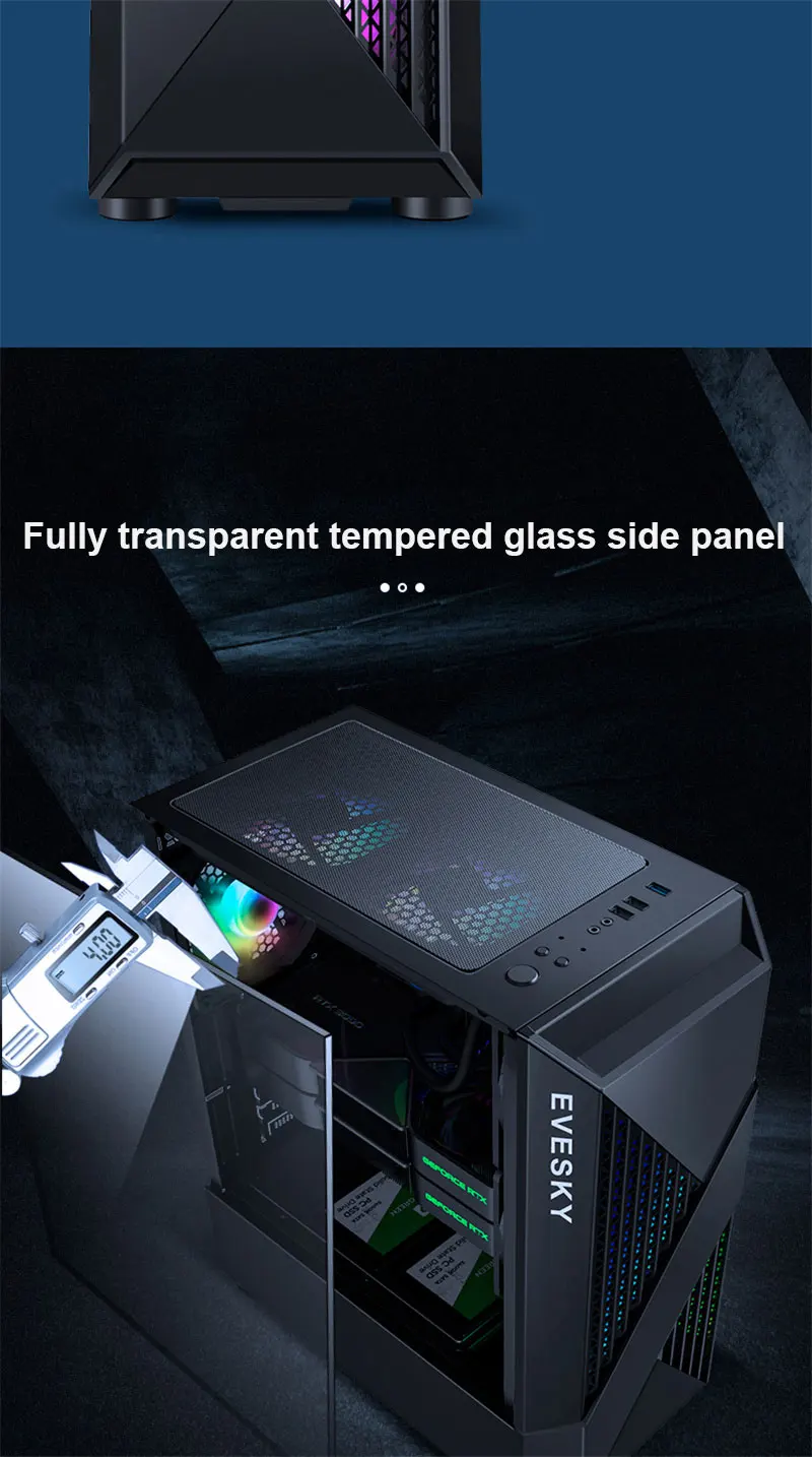 - Full-permeable tempered glass side panel