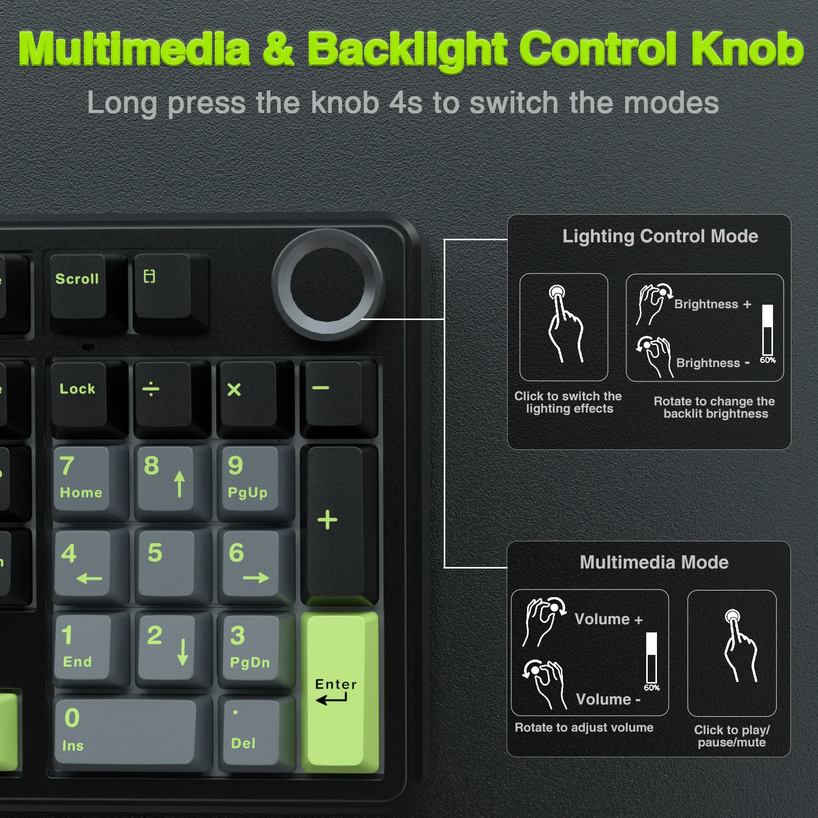 96% Layout, 100 Keys with Rotary Multifunctional Knob