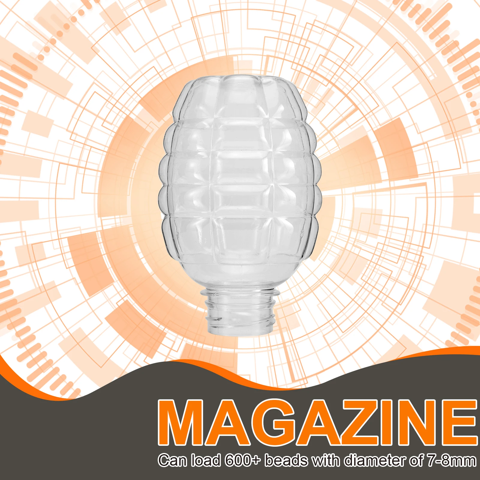 - High Capacity Gel Bead Magazine: Stay in the game longer with our large, top-mounted grenade-shaped magazine. It can load over 600 gel beads (7-8mm diameter), ensuring you have plenty of ammunition for extended play sessions before needing a reload.