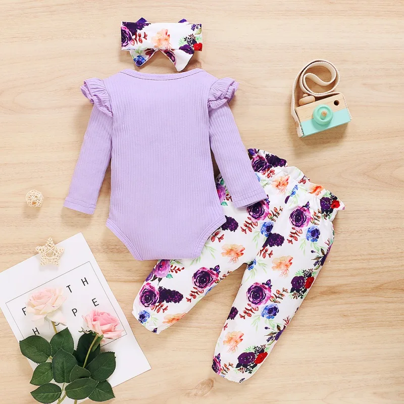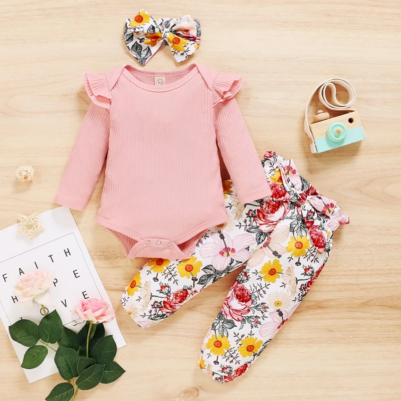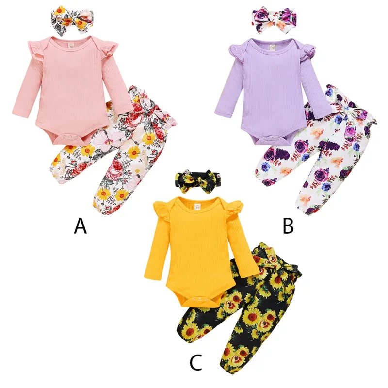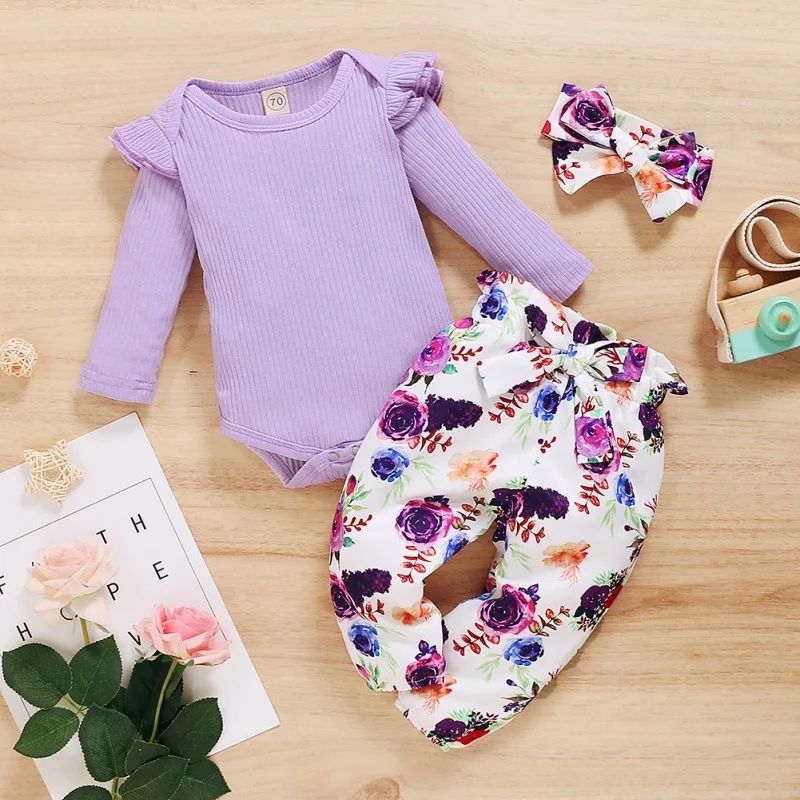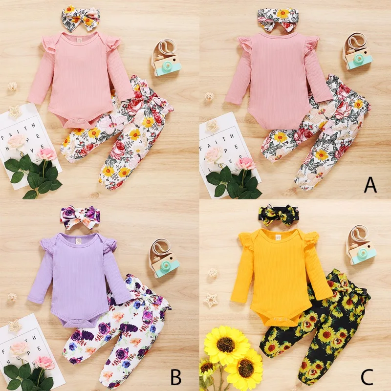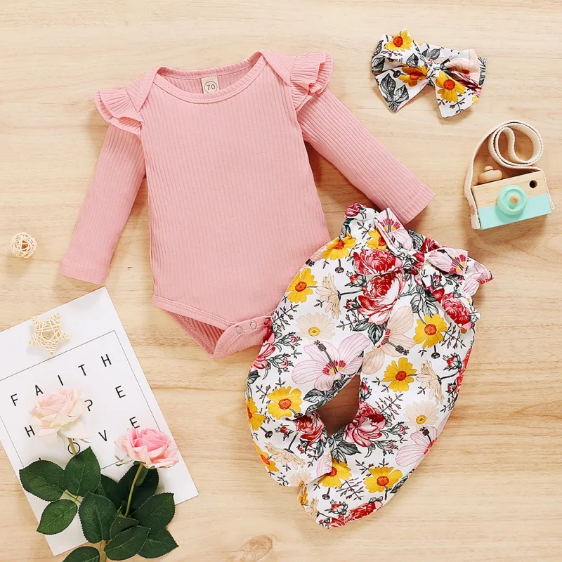 - Casual long sleeve romper and floral trousers with headband, which will make your kids look cool and attractive
