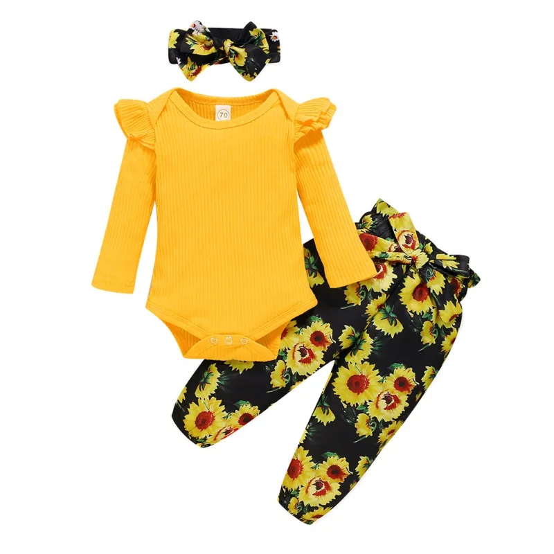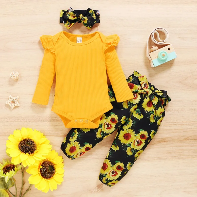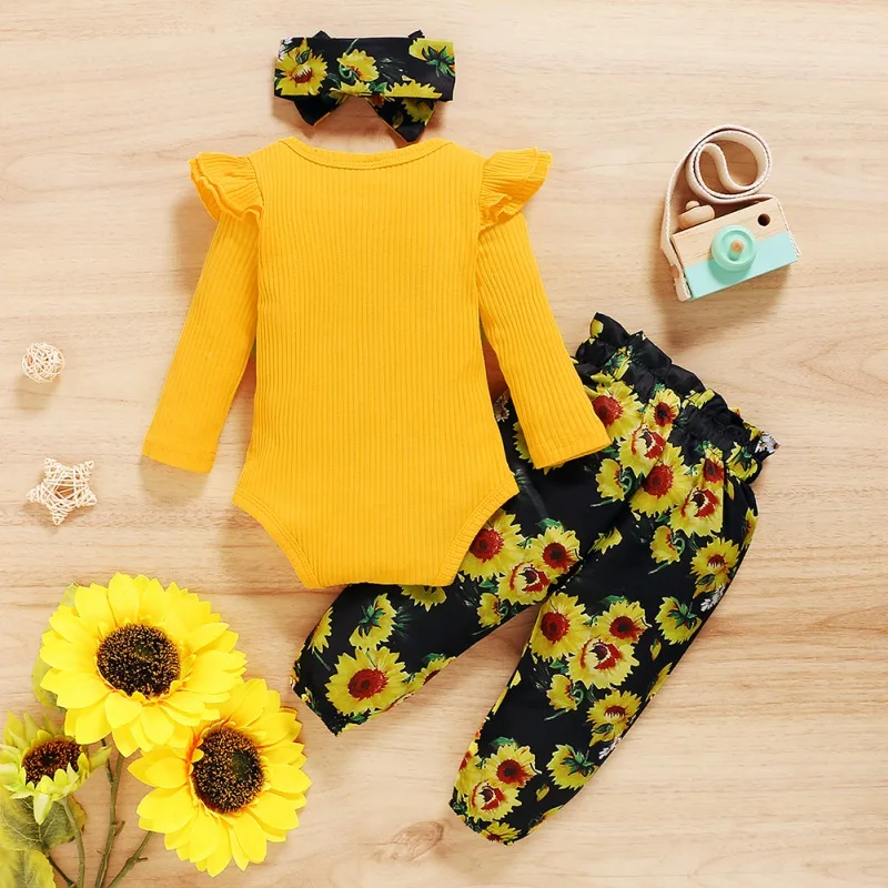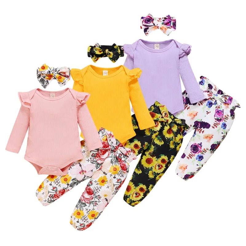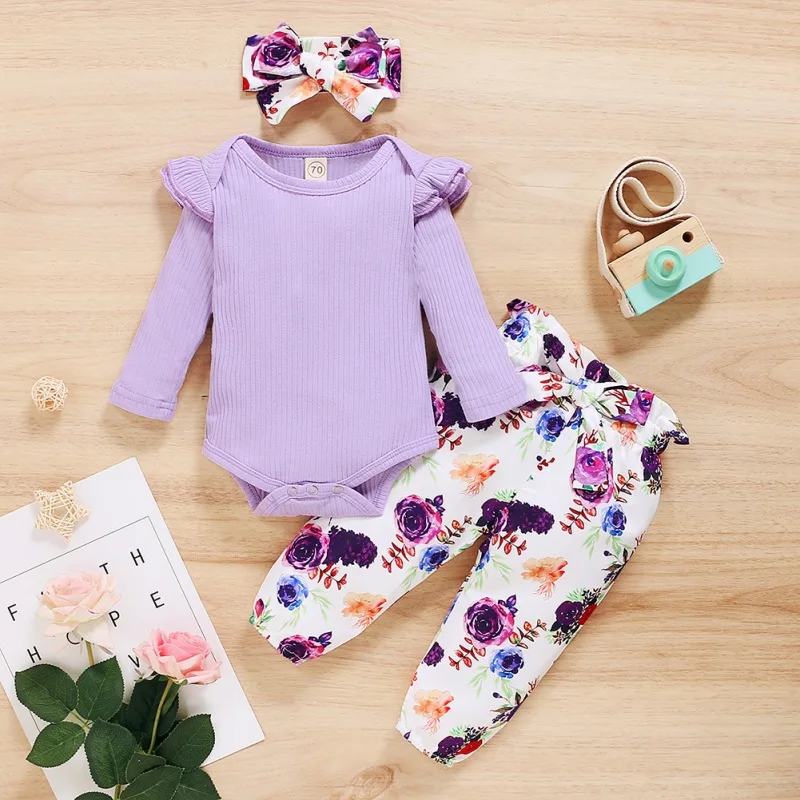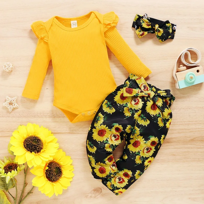 - Casual long sleeve romper and floral trousers with headband, which will make your kids look cool and attractive