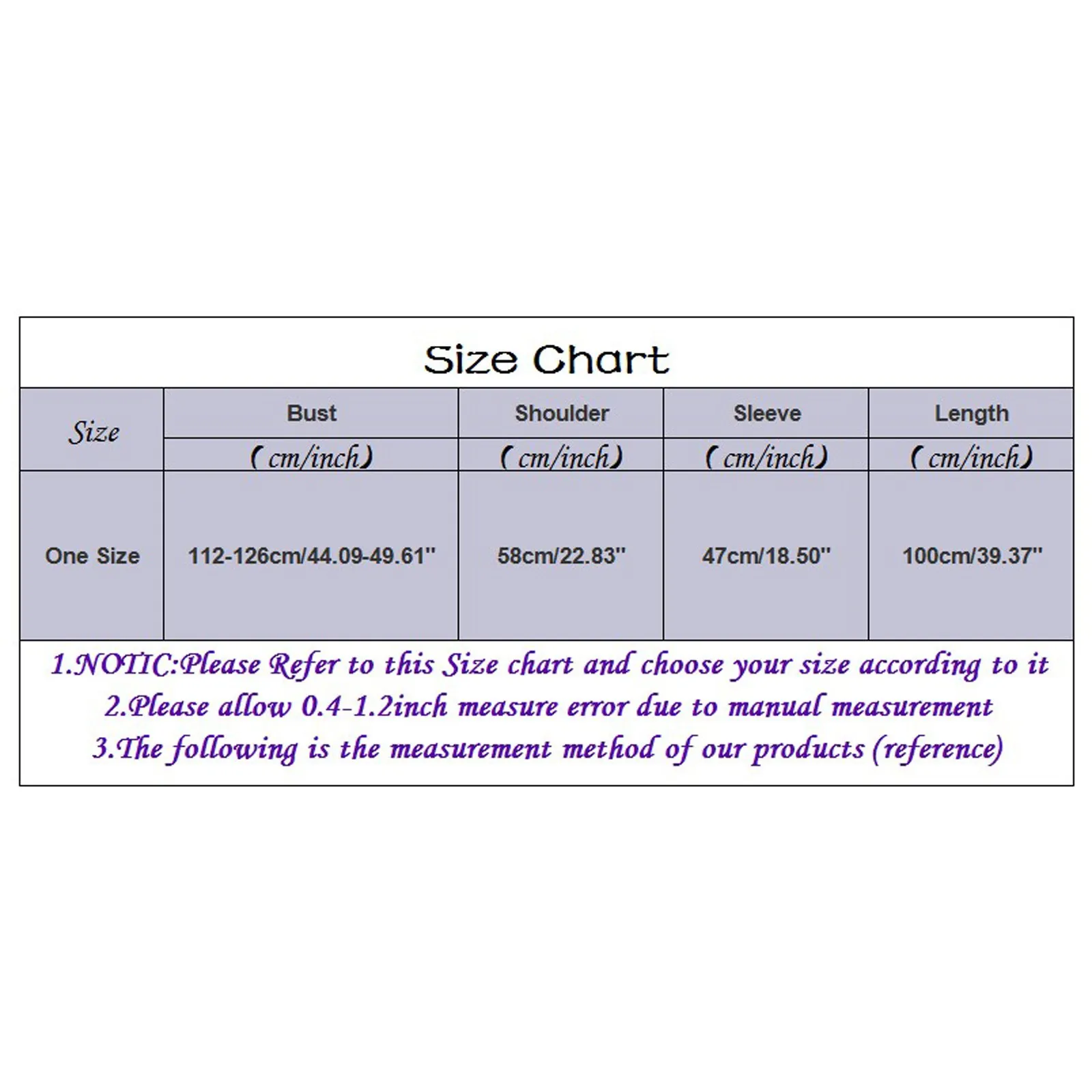 - Bust: 112-126cm (44.09-49.61 inches)