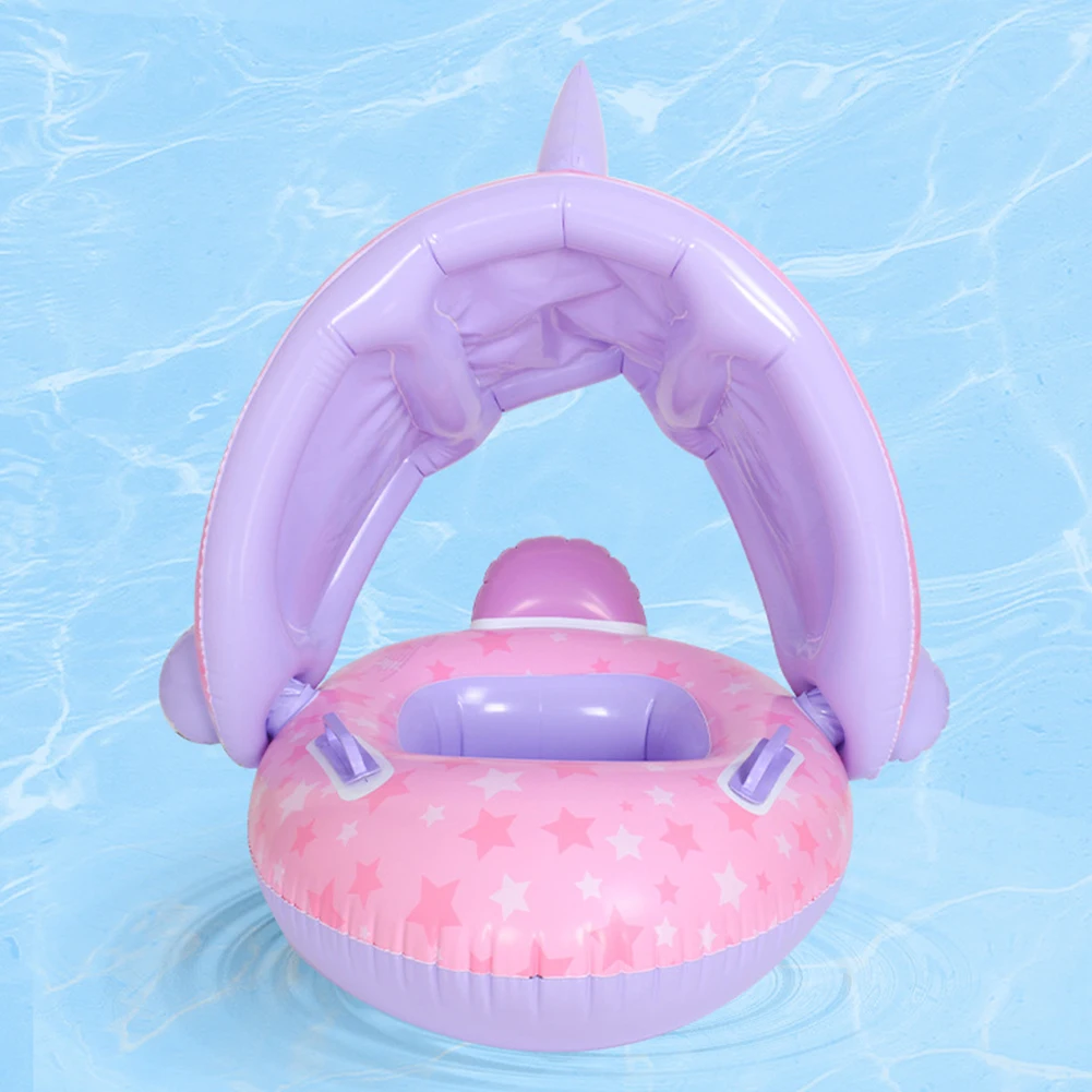 - Eco-Friendly Material: Constructed from high-quality, environmentally friendly PVC, this inflatable swimming ring with sunshade ensures a safe and non-toxic floating experience for children. Its durable material is gentle on the skin and resilient against wear and tear, providing long-lasting water fun.