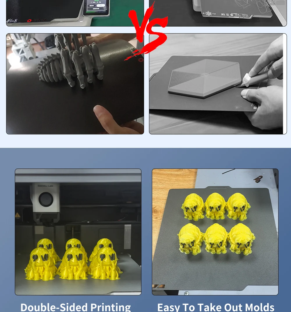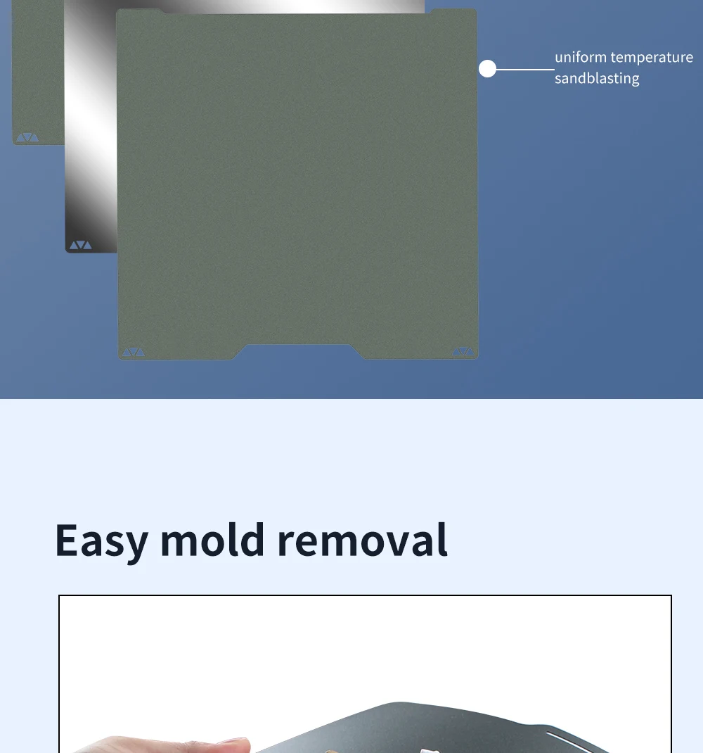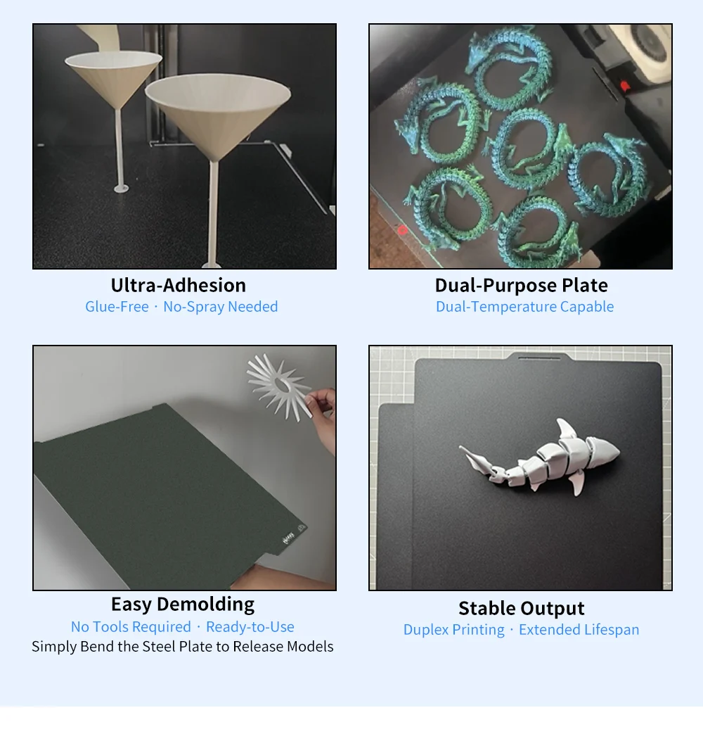 - Effortless Model Removal (“Easy Demolding”): Gone are the days of prying prints with spatulas or knives. Simply bend the flexible “Spring steel plate” after your print cools, and your finished models will pop right off, leaving no damage to the print or the bed surface. “No Tools Required – Ready-to-Use!”