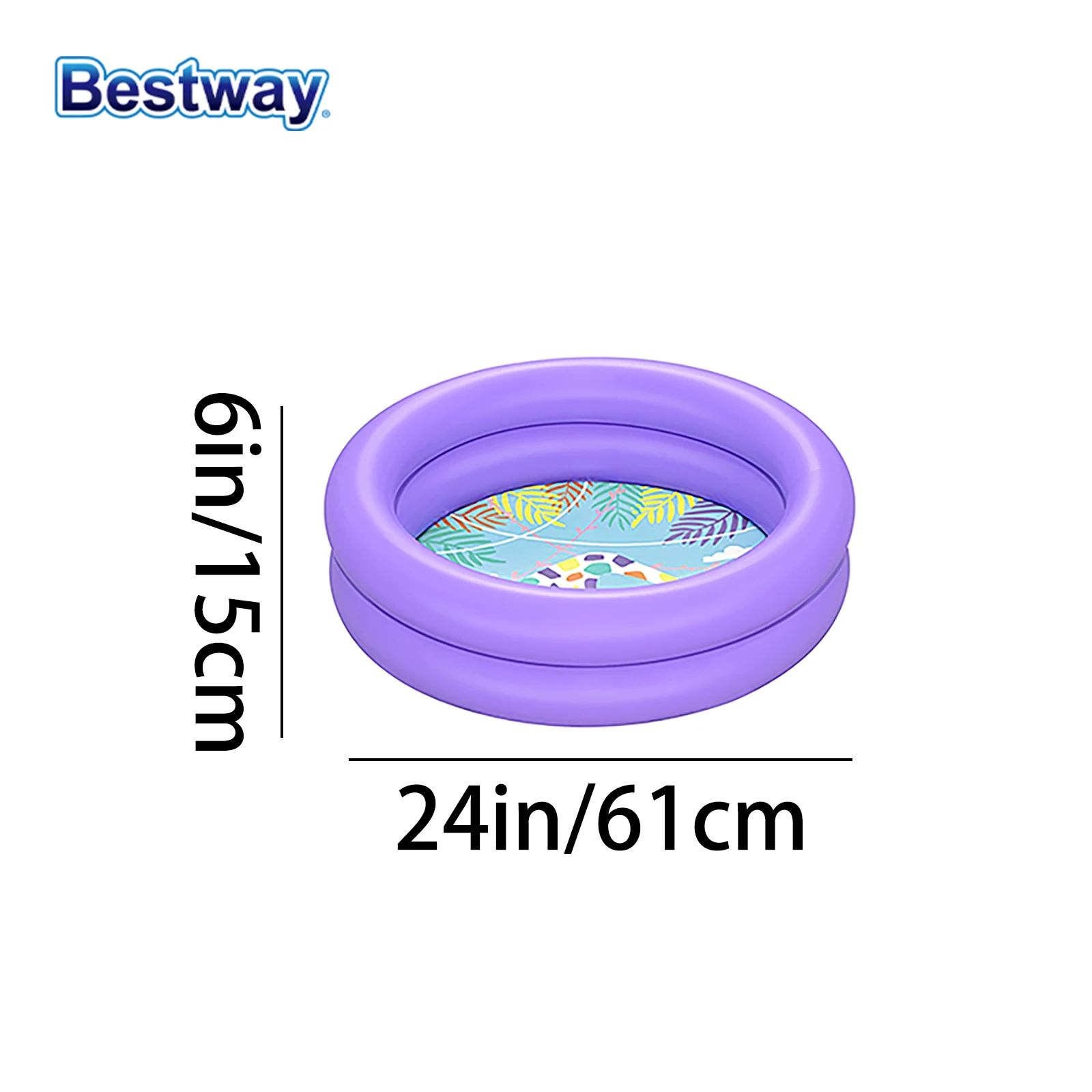 Turn up the summer fun with the Bestway 61cm inflatable kiddie pool, perfectly sized for toddlers and babies to enjoy safe water play. With its soft, double-ring design and colorful printed base, this mini splash pool is ideal for patios, balconies, backyards, and even indoor use.