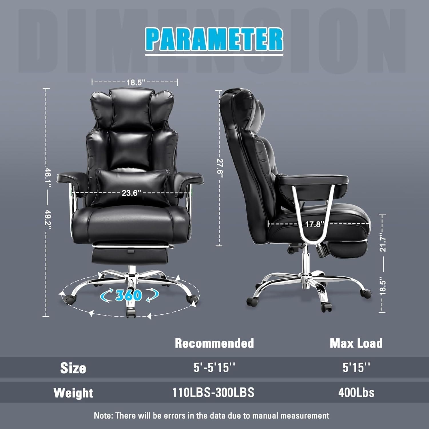 Heavy-Duty Construction: Crafted with durable materials, this executive office chair is designed to withstand heavy use and weight.