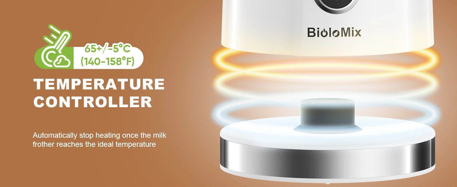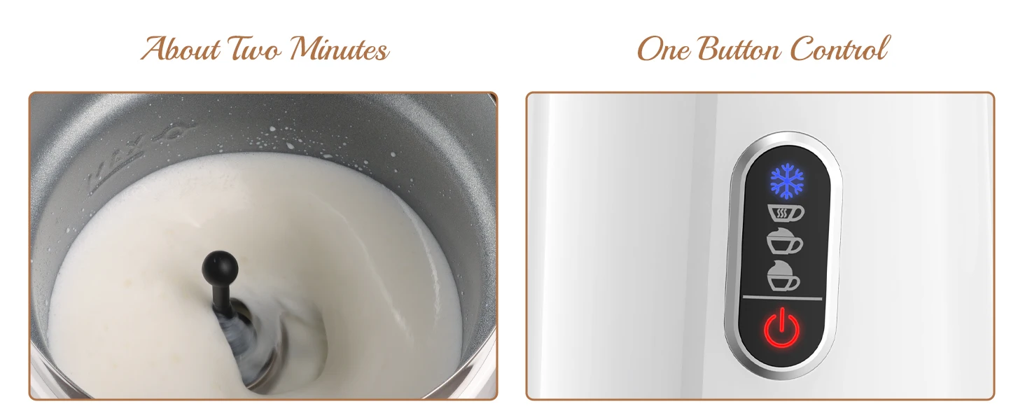 - Safe design: temperature control with automatic shutoff when the foam is ready. Food-grade, non-stick interior helps prevent burning.