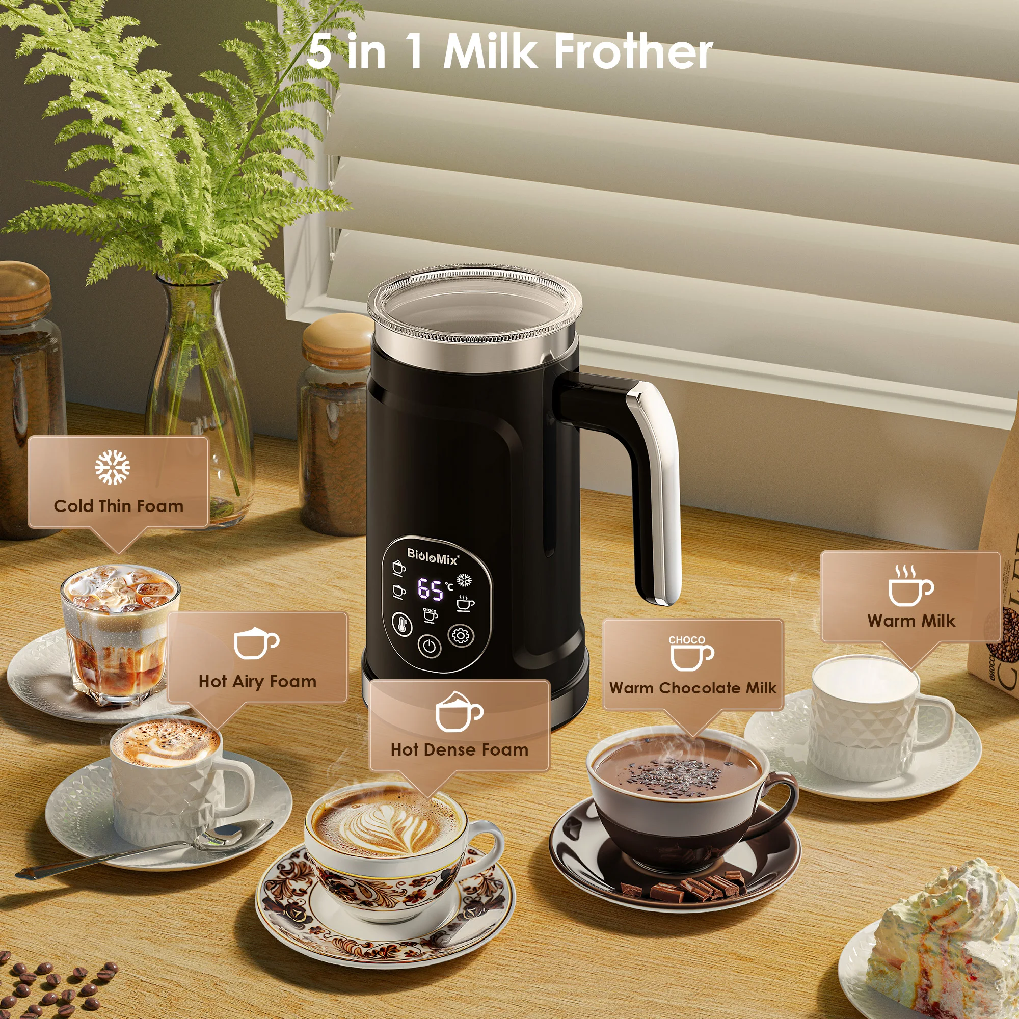 BioloMix 5-in-1 Milk Frother LED Touch Hot Cold