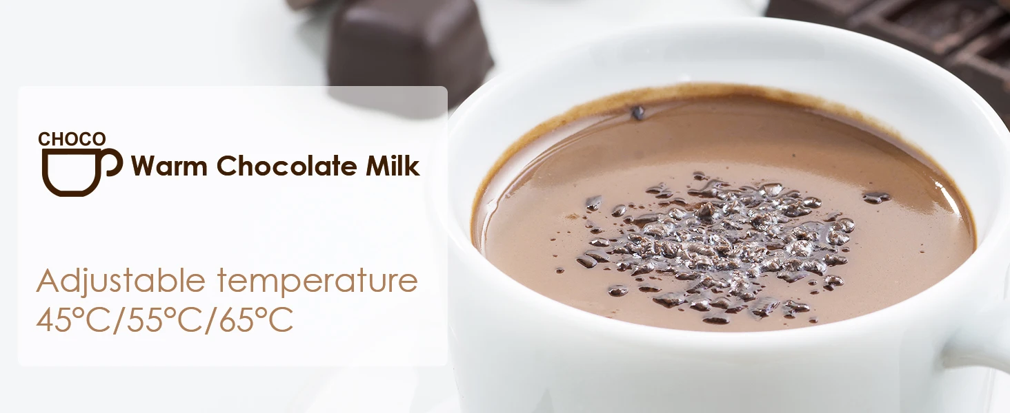 - Auto-warming: Hot milk and froth settings heat up to 65°C and stop automatically when reached.