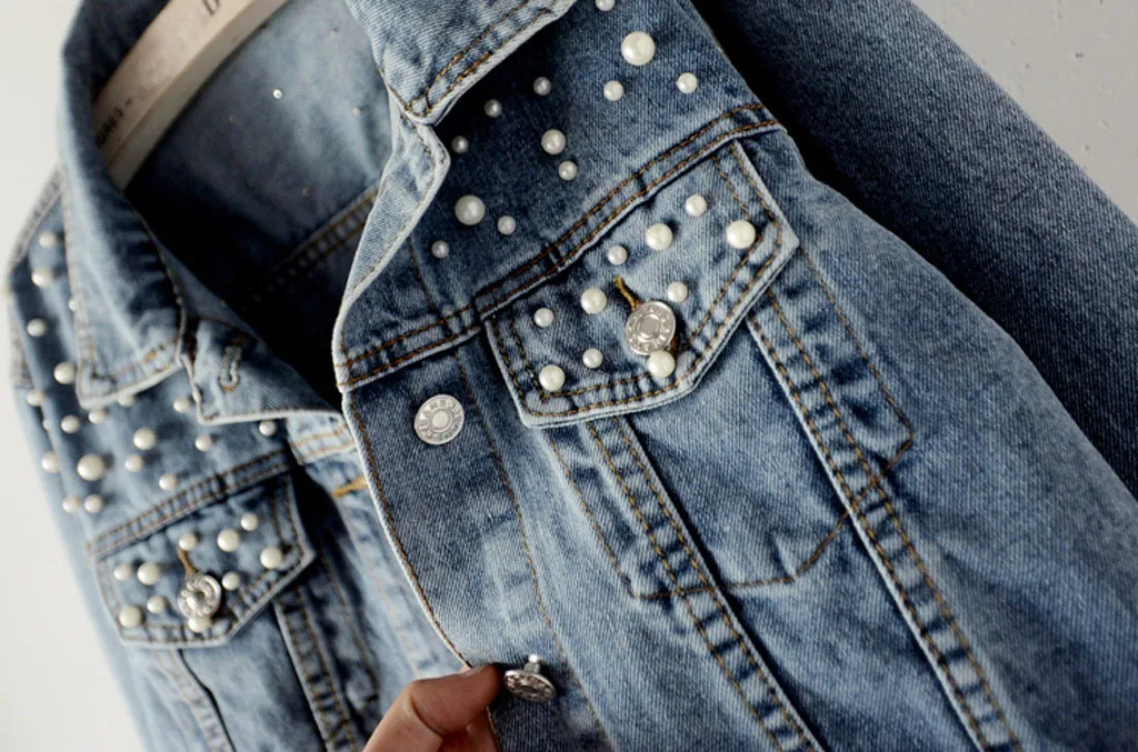 This is a special beading denim short coat. It’s crafted from high-quality materials, making it durable enough for sportswear. This coat is an excellent gift for your loved ones or yourself.