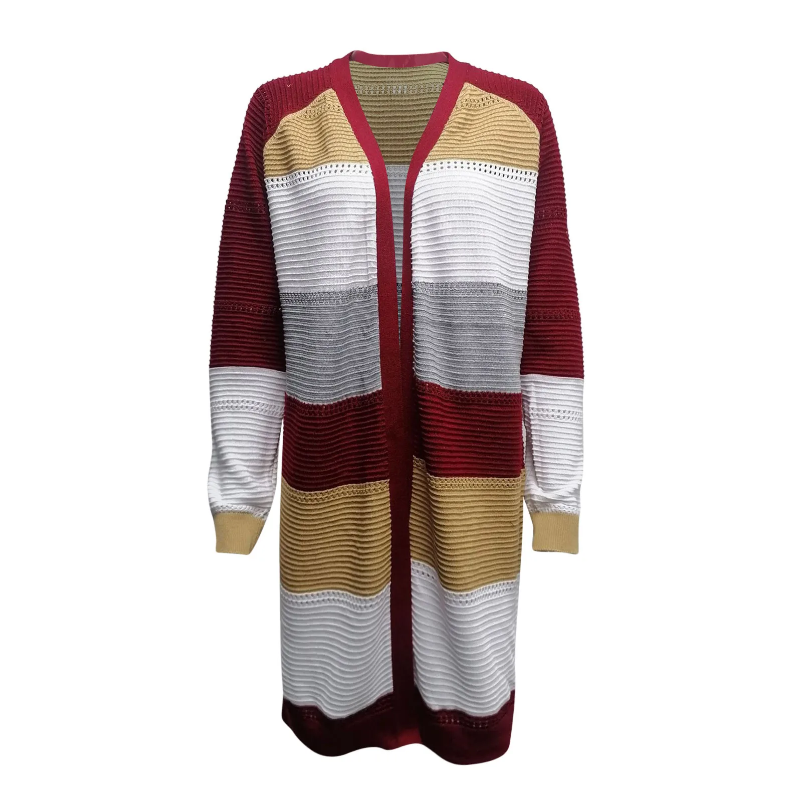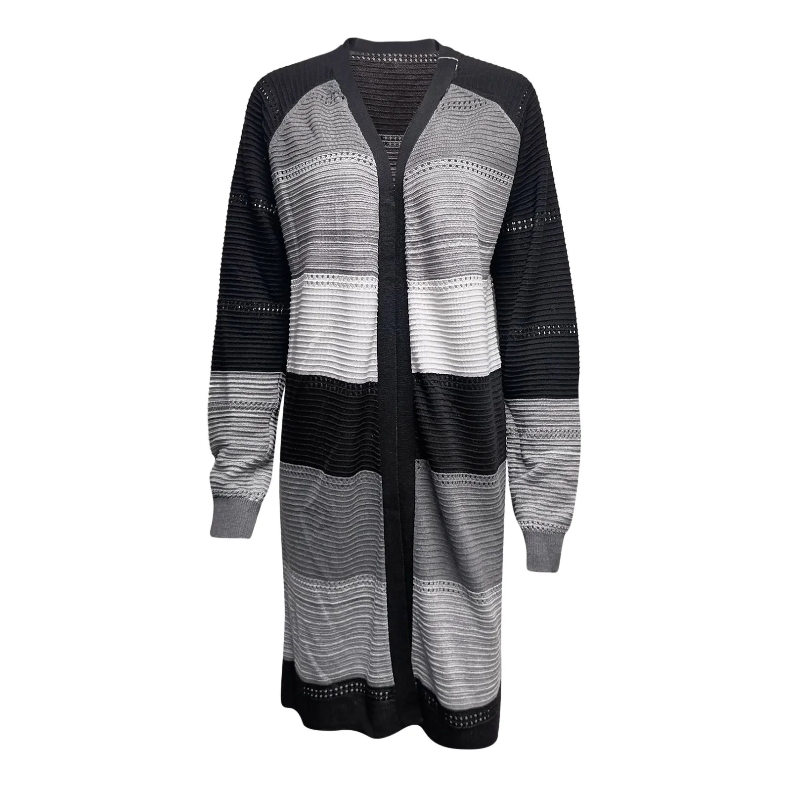 Chic Design: The cardigan’s design includes long sleeves, a striped print, and color block elements. Its lightweight nature and knee-length cut offer a fashionable and sexy look. This cardigan is ideal for wearing in spring, autumn, and winter.