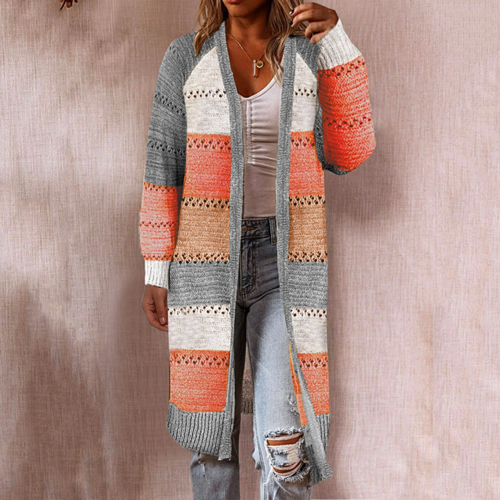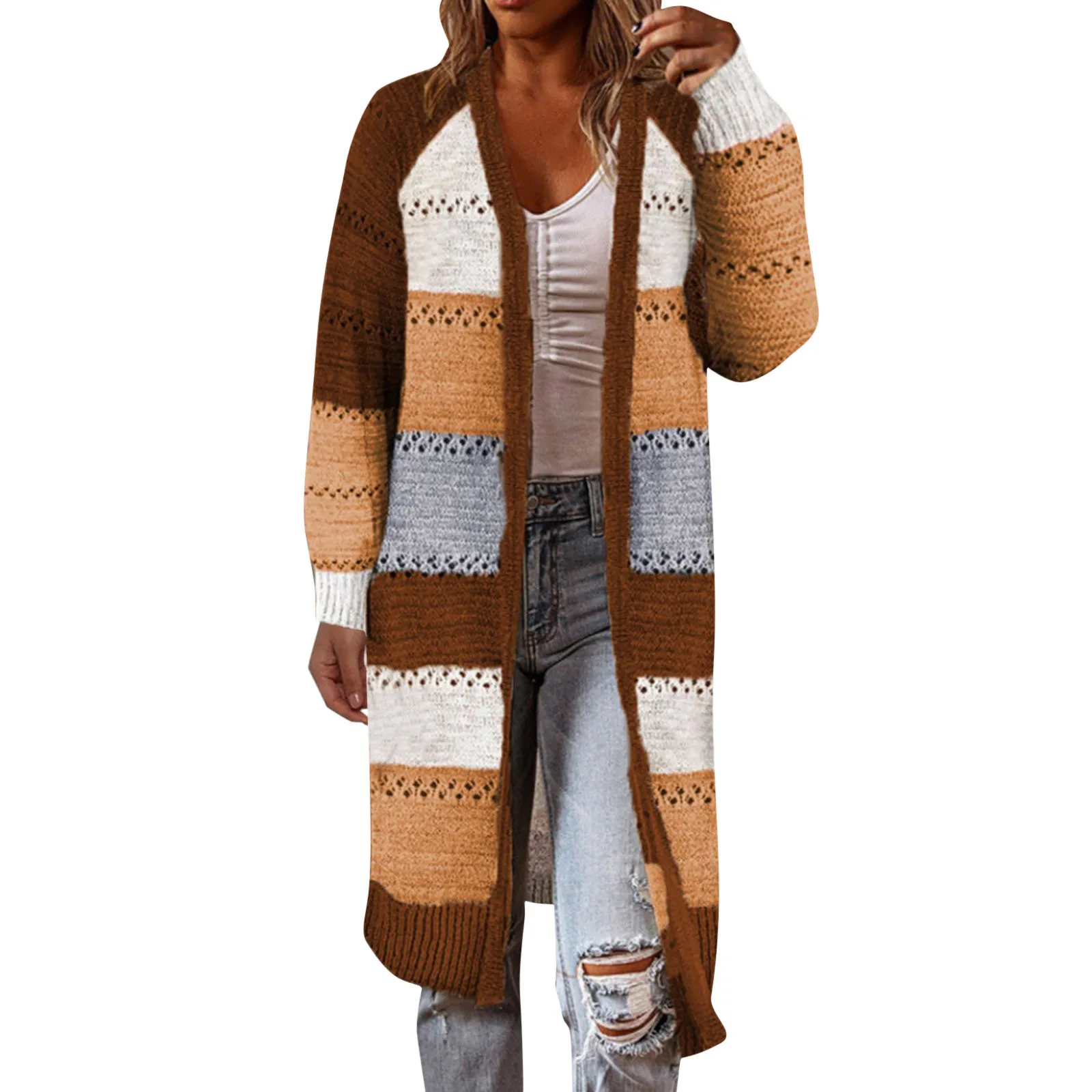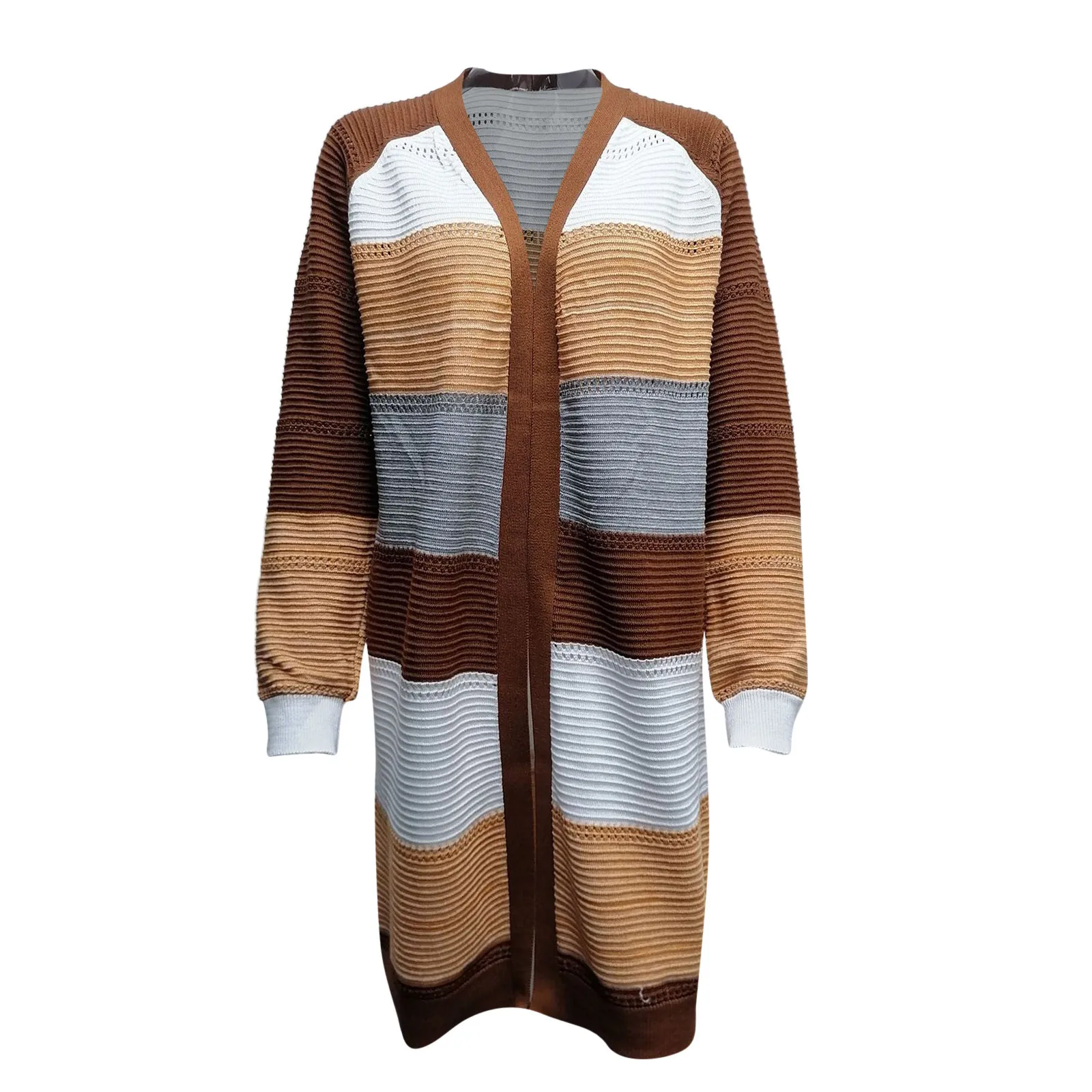 Boho Colorblock Long Cardigan for Women